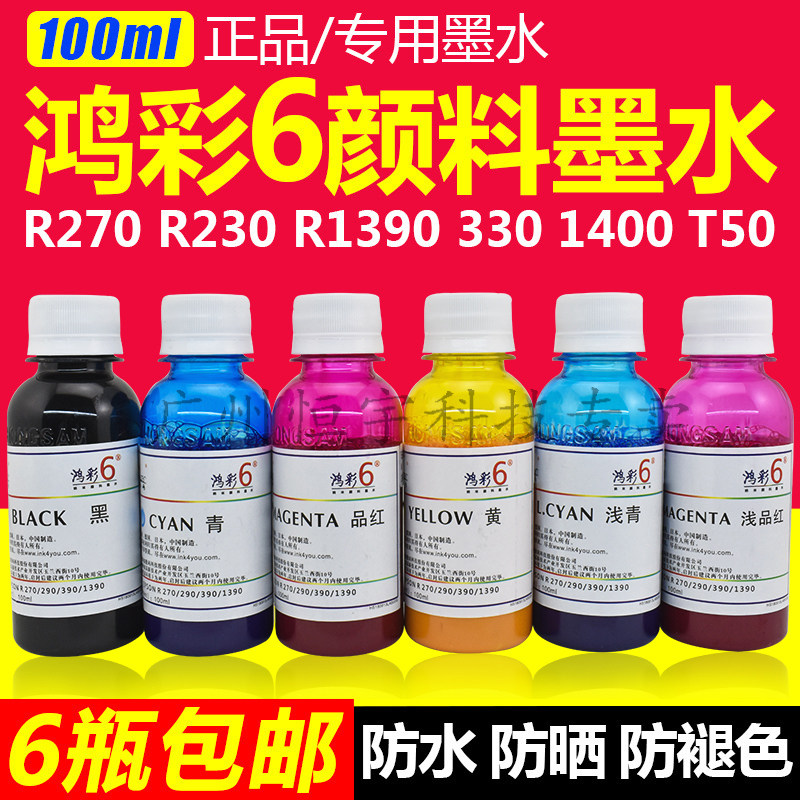 适用喷墨打印机 R270 R290 R390 鸿彩6 1390 t50专用颜料墨水 包邮