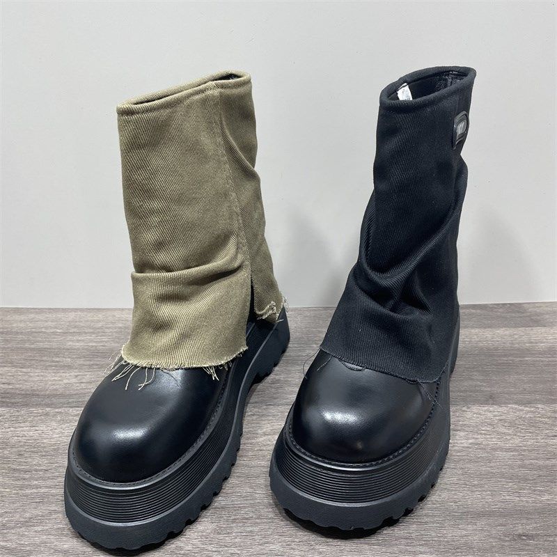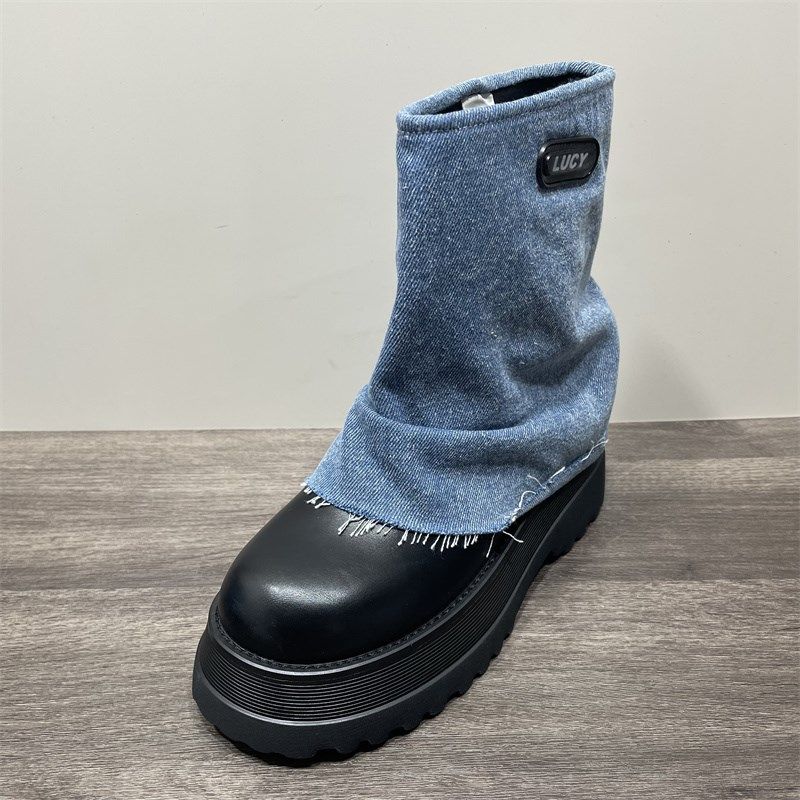 炸街裤 断码 新款 西部牛仔靴套筒短靴女秋季 管靴厚底马丁靴 处理时尚
