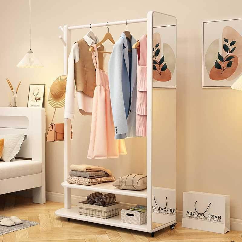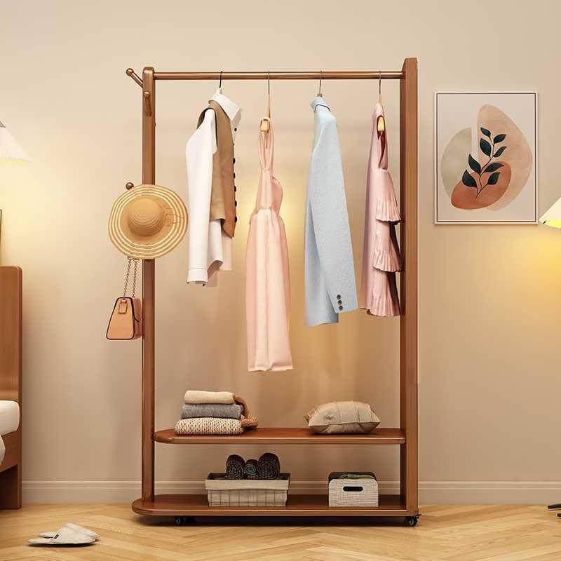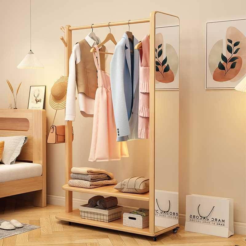 实木衣帽架落地多层挂衣架可移动收纳架全身穿衣镜子一