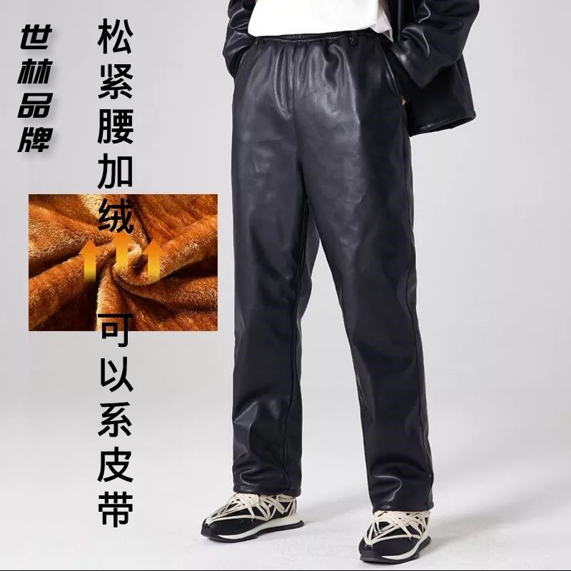 中老年皮裤 高腰宽松保暖防寒防雨爸爸摩托车防风 男加绒加厚冬大码