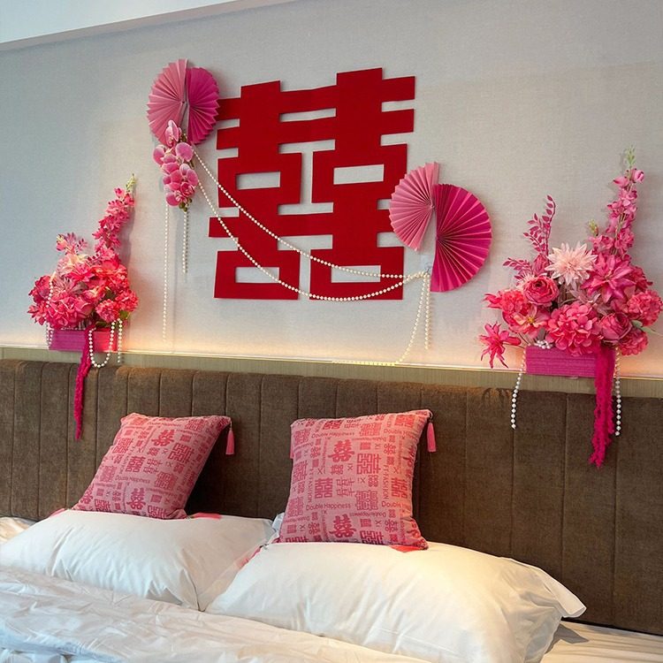 小红书婚房床头囍字背景墙装 饰婚礼布置男女卧室客厅喜庆用品