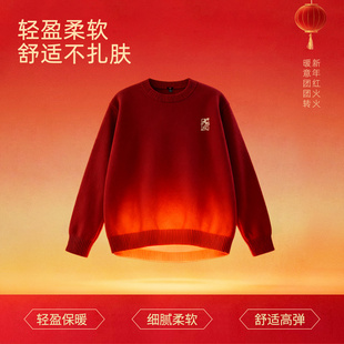 圆领针织衫 衣服男士 2026马年本命年薄款 班尼路S&K红色毛衣男春季