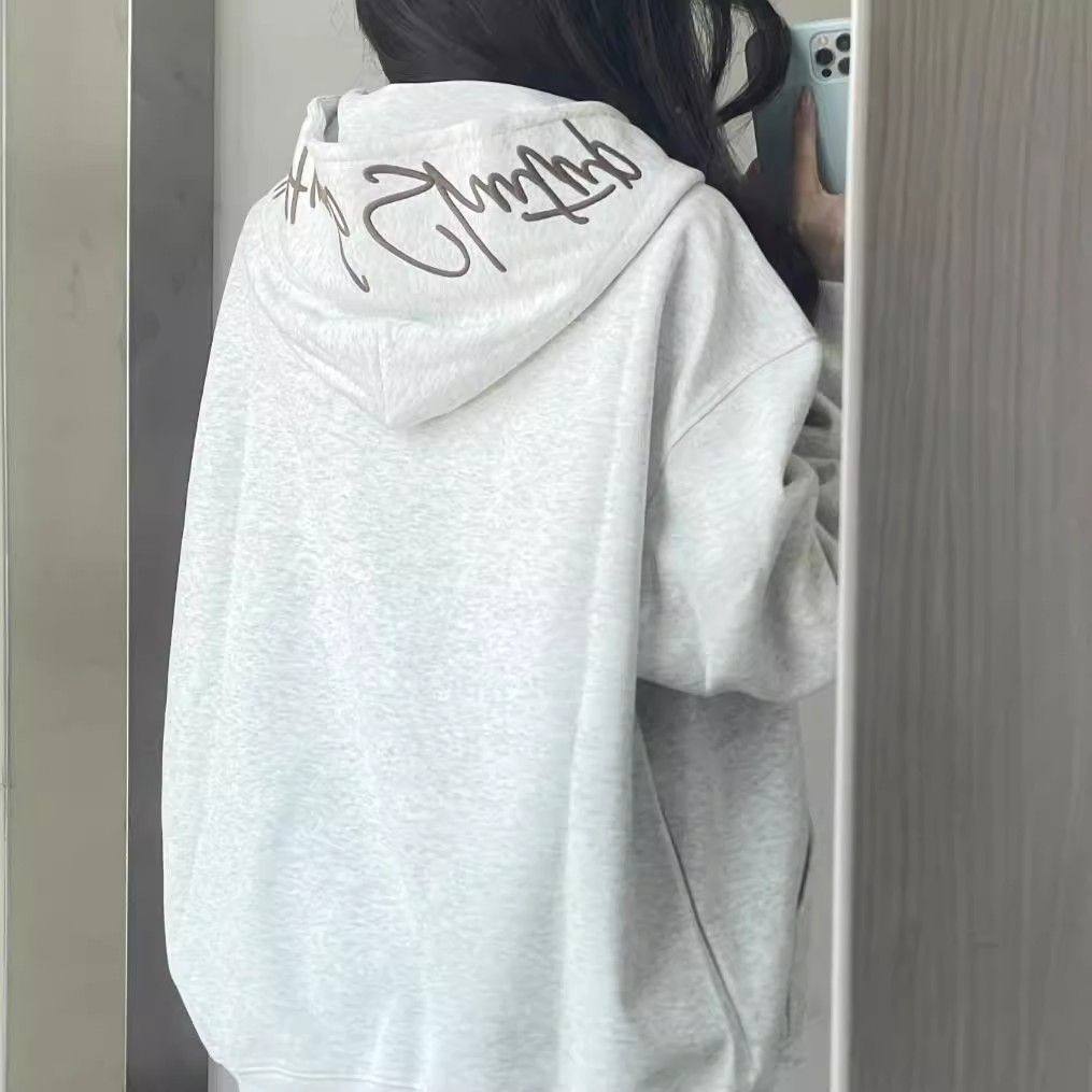 国潮字母刺绣玫红色卫衣连帽潮牌男女oversize情侣外套2025冬新款