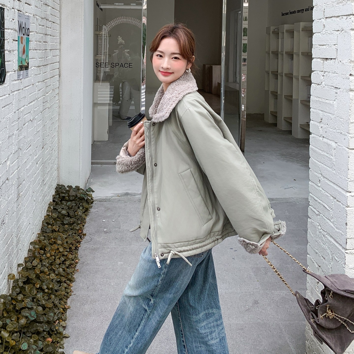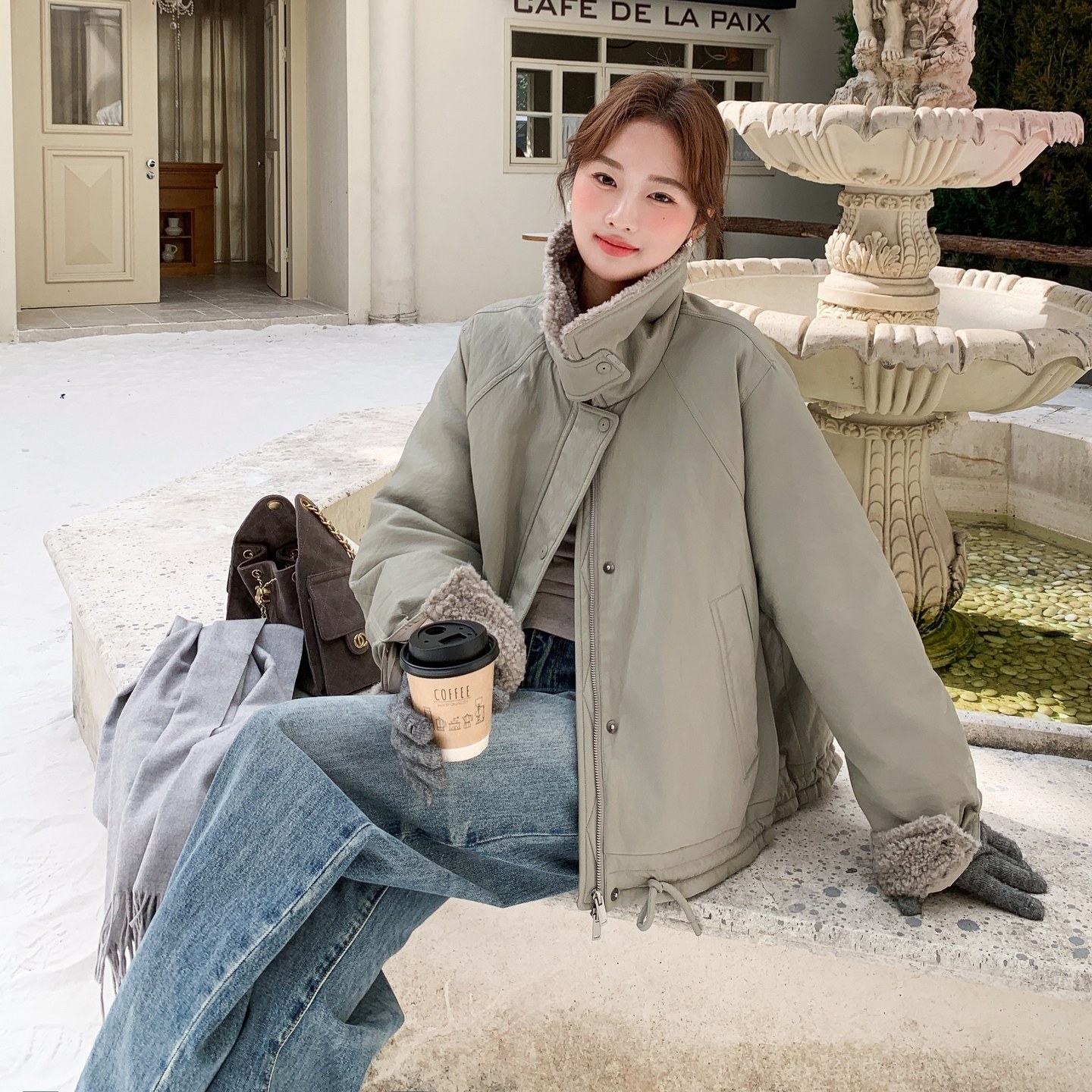 羊羔毛 拼接 羽绒服297 P265 90绒 1874 K398 首发新款