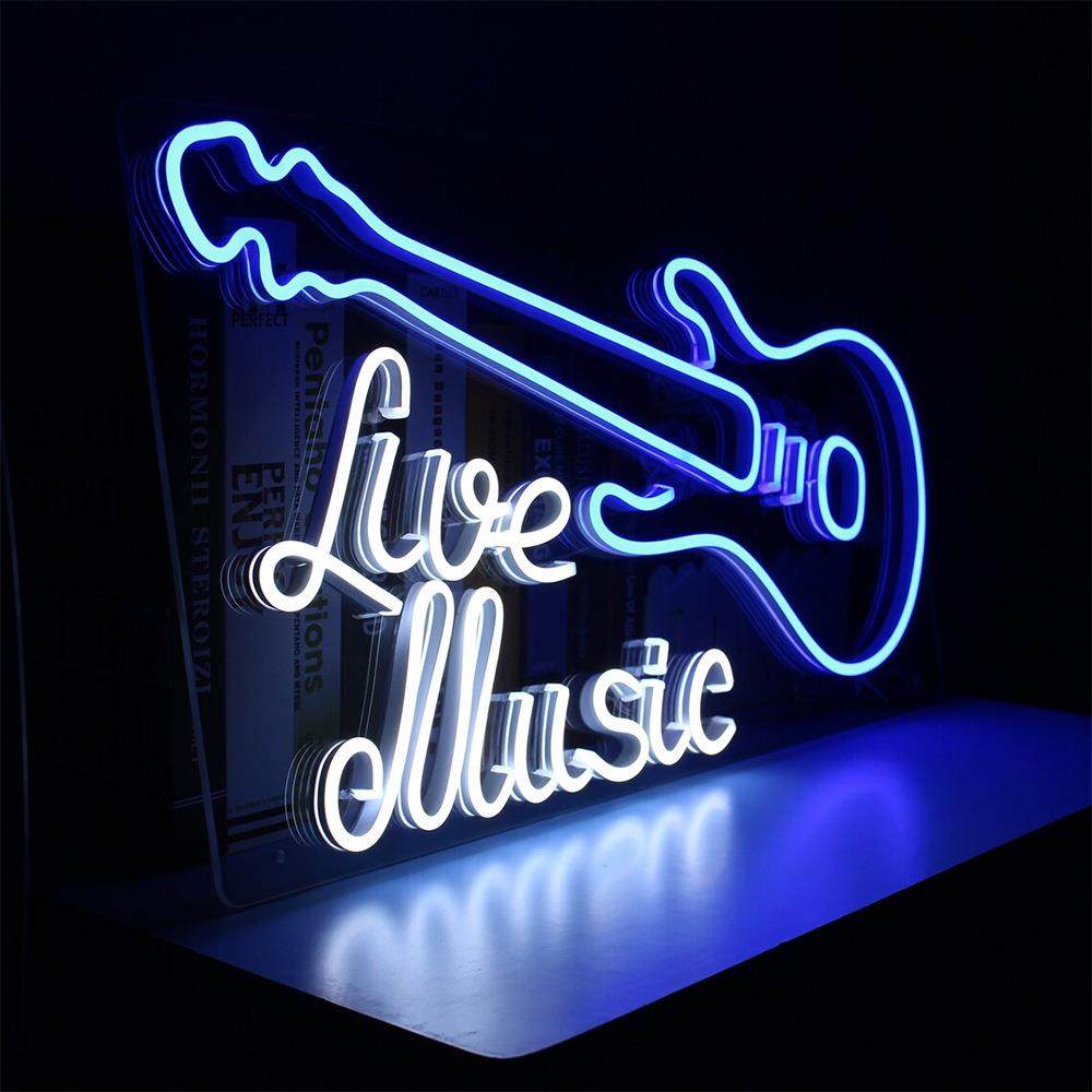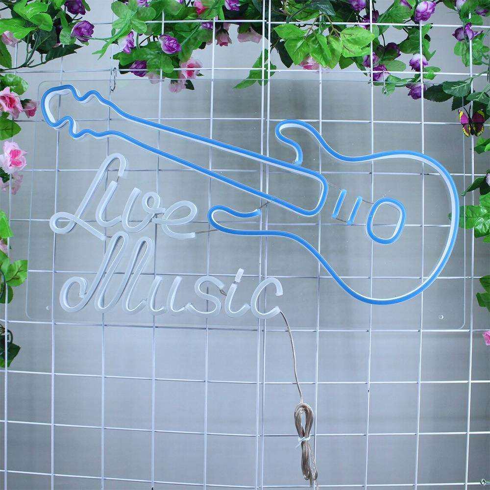 造型霓虹灯吉他乐器音乐music标识霓虹装 饰灯打卡拍照创意灯跨境