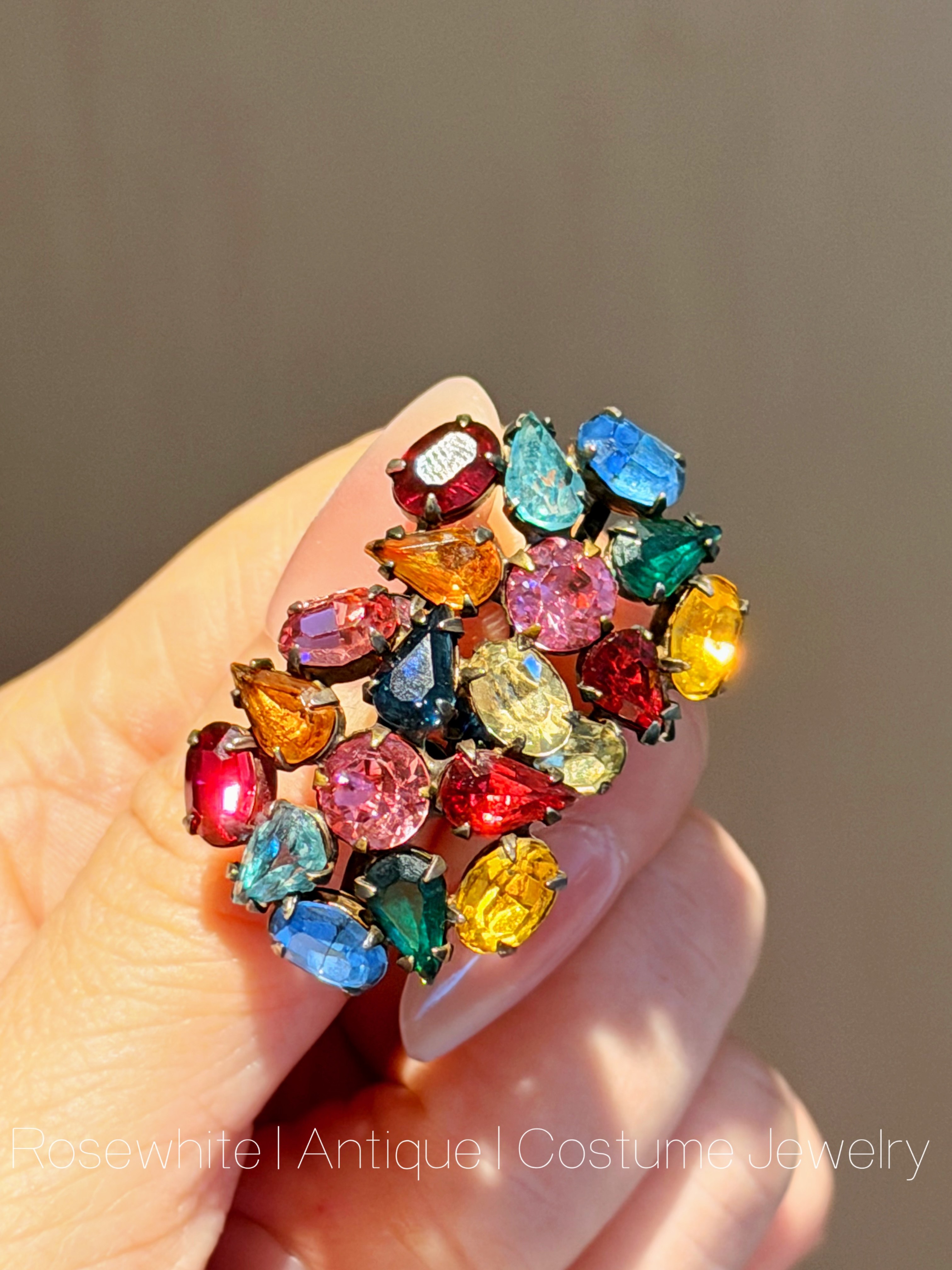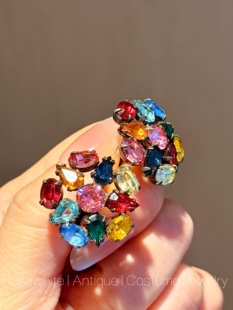 中古不退换|老捷克Sterling多彩花盘耳夹
