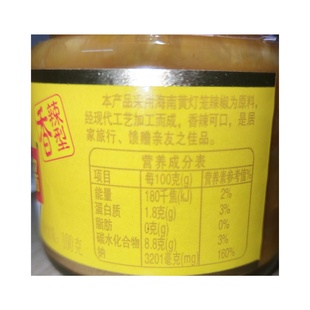 海南特产春光黄灯笼辣椒酱0脂肪下饭酱拌面超特辣蒜蓉黄椒酱瓶装