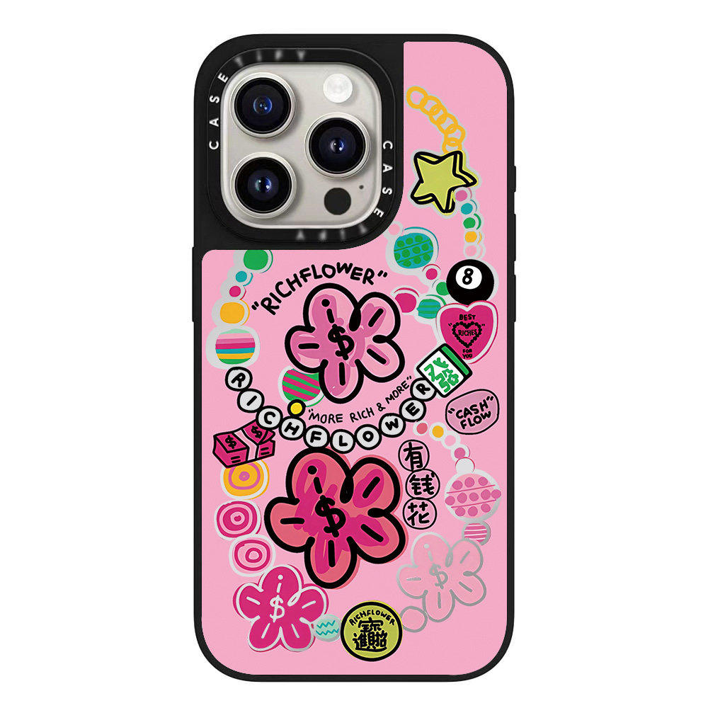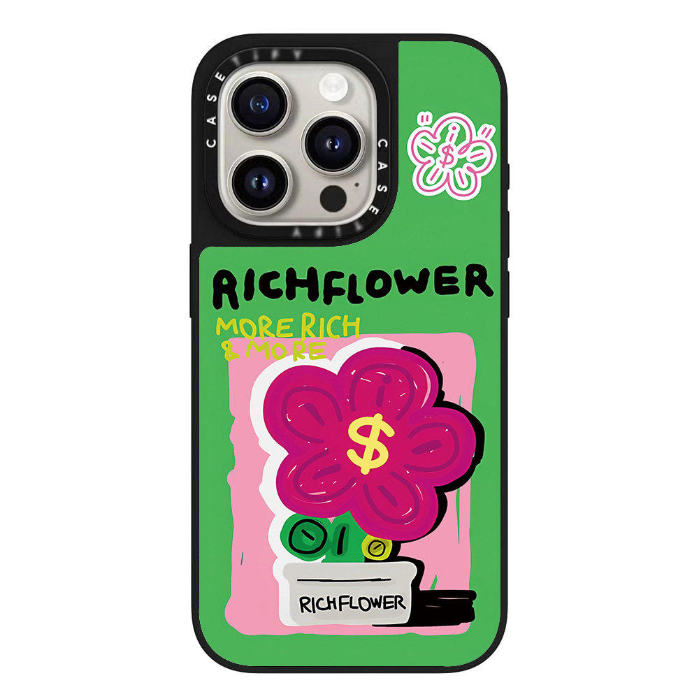 flower招财17pro苹果手机壳16Promax手机壳iphone14Promax潮13防摔套女磁吸 CASE手机壳Rick 镜面有钱花