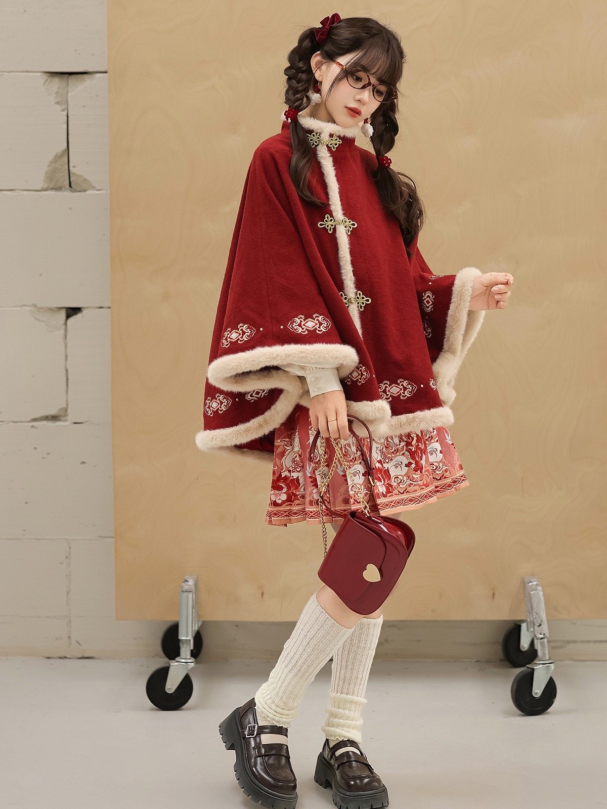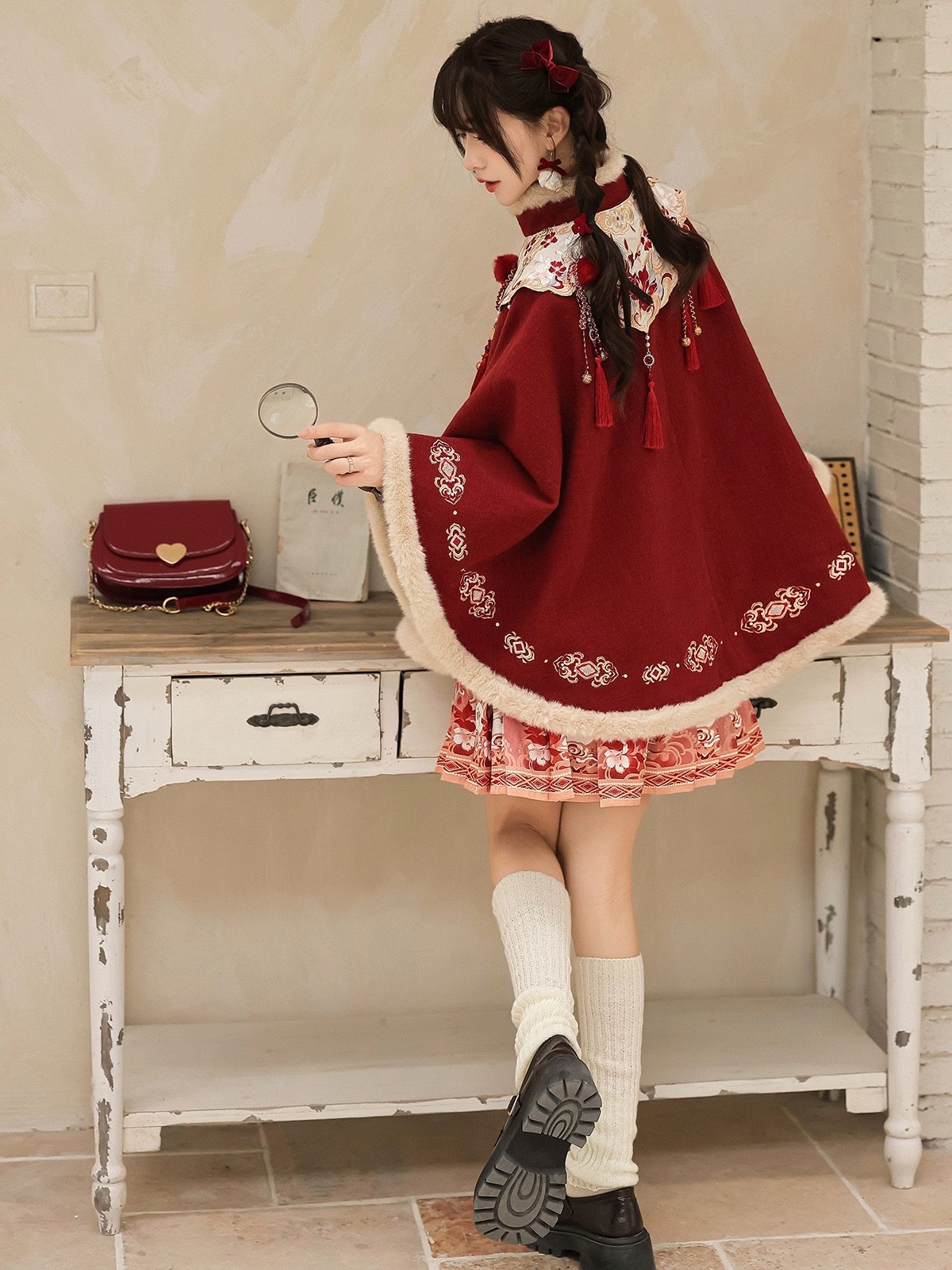 白马载梦原创冬季 斗篷 汉服女中国风过年拜年服战袍云肩马面裙套装