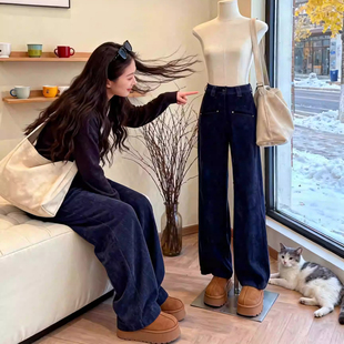 垂感毛呢直筒阔腿休闲裤 高腰显瘦休闲裤 软糯女新款 子 加绒