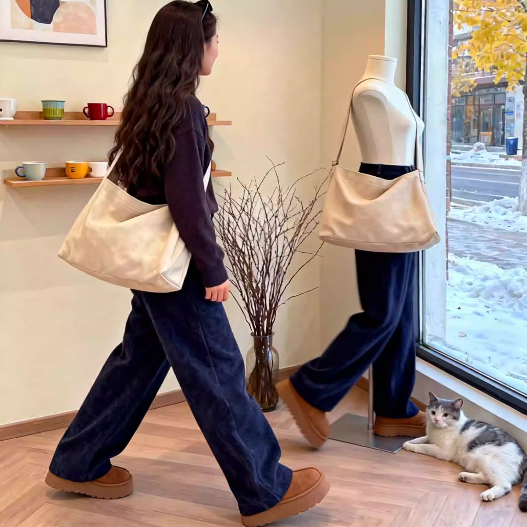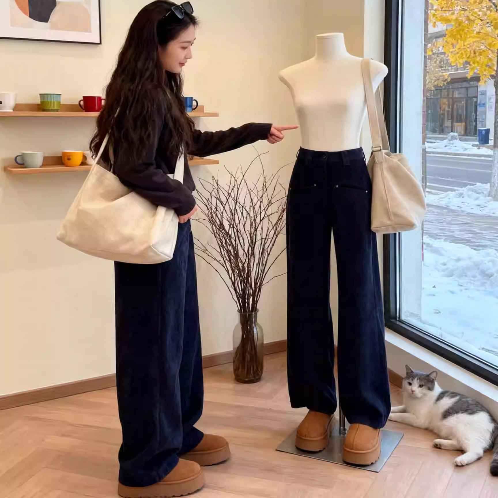 女冬季 白色直筒裤 新款 休闲长裤 子 宽松阔腿运动裤 SIINSIIN加绒卫裤