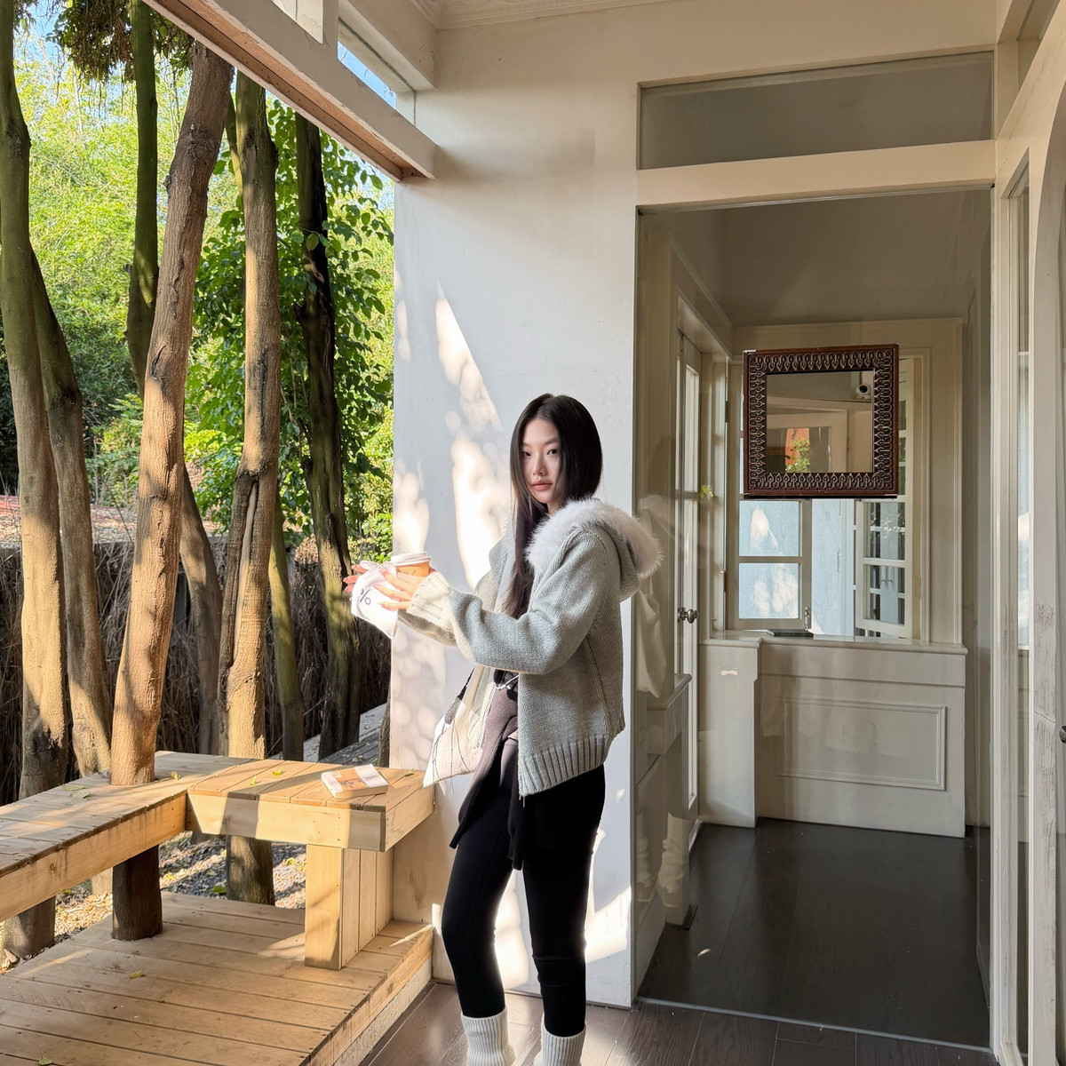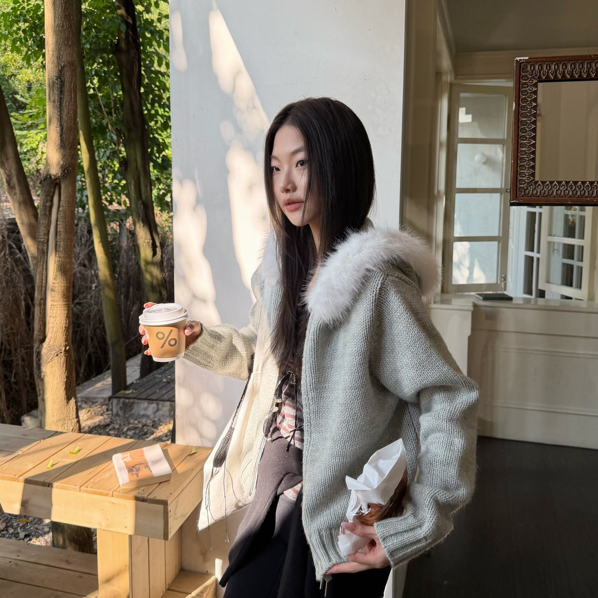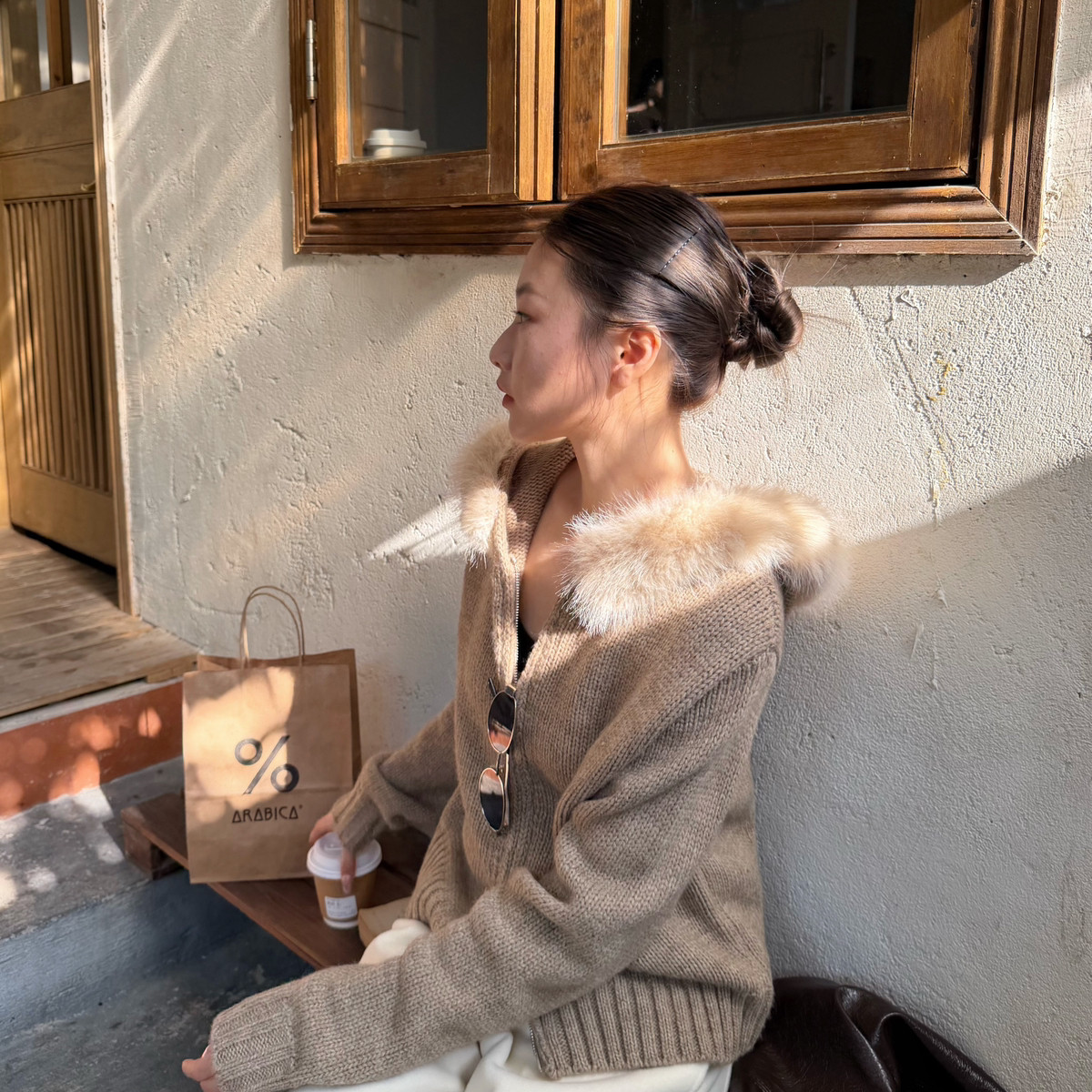 配可拆仿毛领 BEFORE 羊毛毛织外套毛衣 日落 含20羊毛 SUNSET