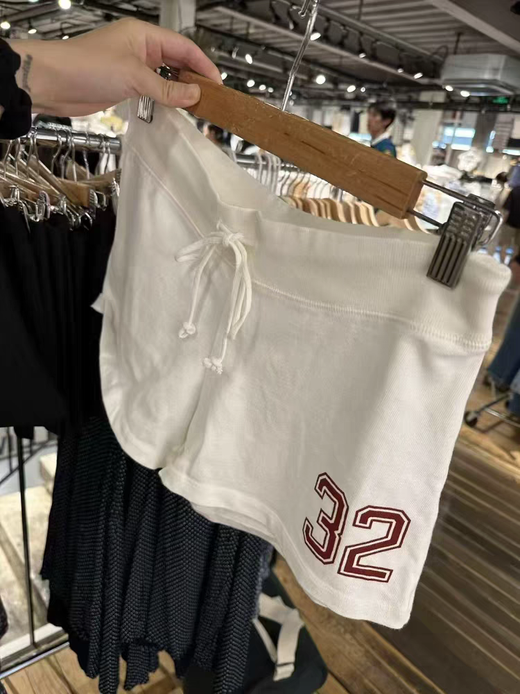 潮 女系带收腰运动裤 BrandyGirl美式 数字32印花辣妹bm运动休闲短裤