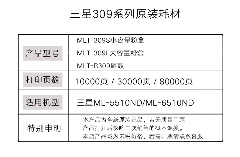 三星MLT 6510ND R309 D309L硒鼓粉盒ML 5510ND墨盒鼓架 D309S 原装