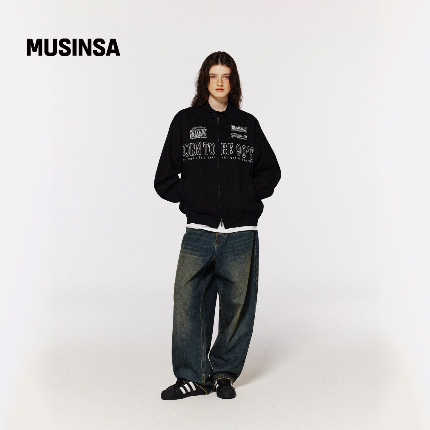 MUSINSA 垂感宽腿牛仔裤 1993STUDIO韩国男女25冬季 复古宽松长裤