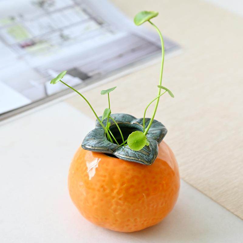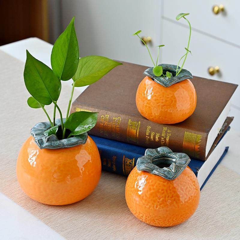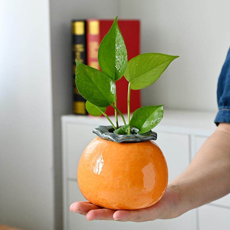 创意橘子绿萝水培花瓶容器茶叶罐插花瓶子水养植物花盆桌面小摆件
