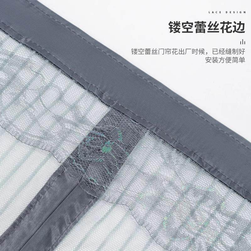 新款 双开蕾丝纱门帘透气双层防隐私家用免打孔隔断帘卧室防蚊虫