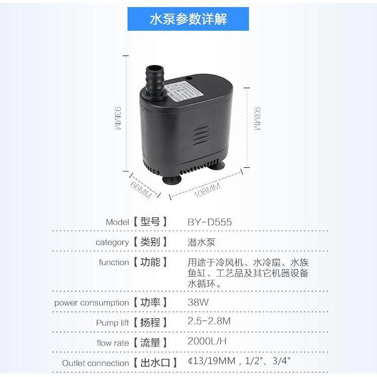 D555 多功能底吸水泵38W 制冰机 鱼缸水泵 2.5米 冷风机潜水泵
