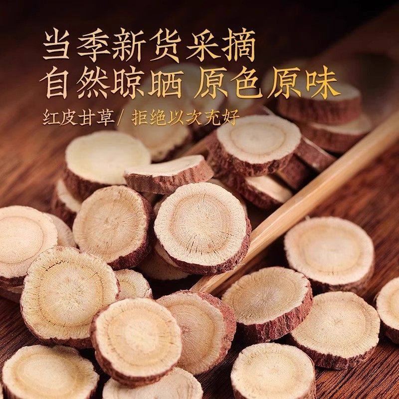 内蒙红皮甘草中药材正品 旗舰店500g无硫生甘草片香料泡水泡茶干草