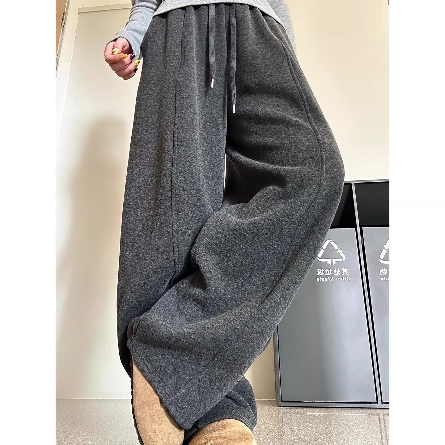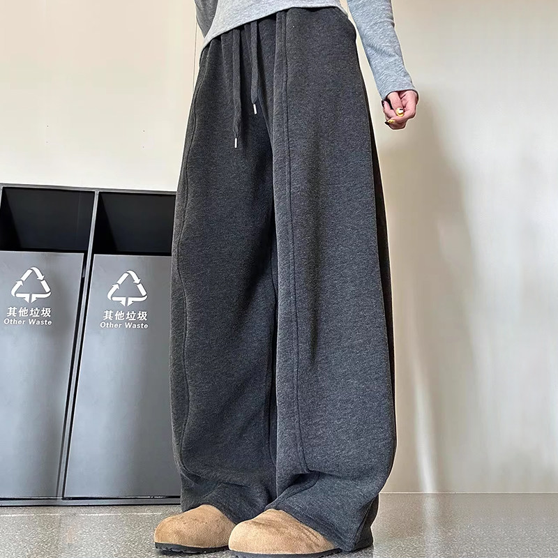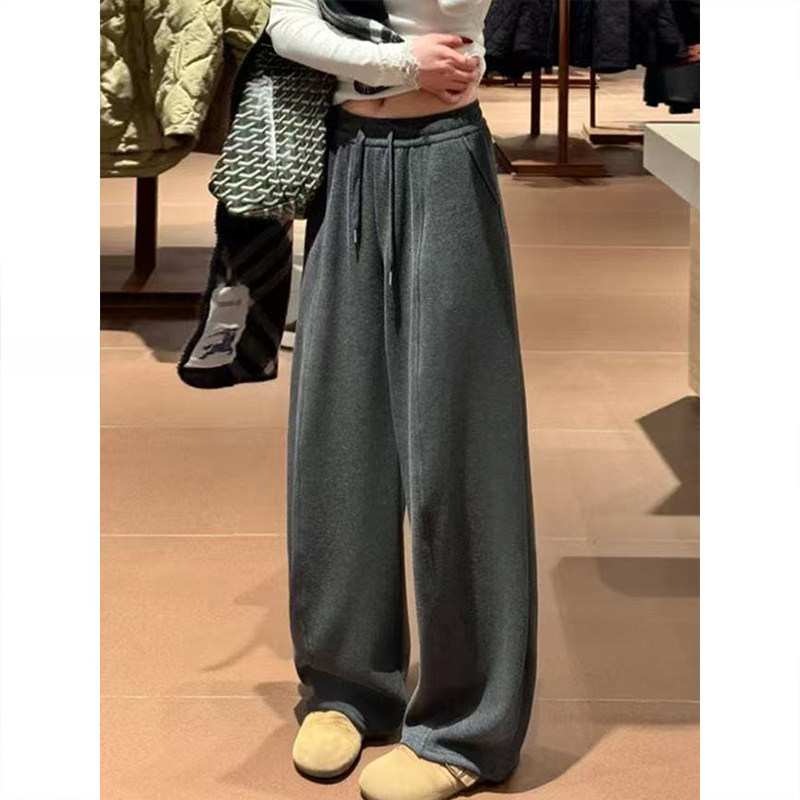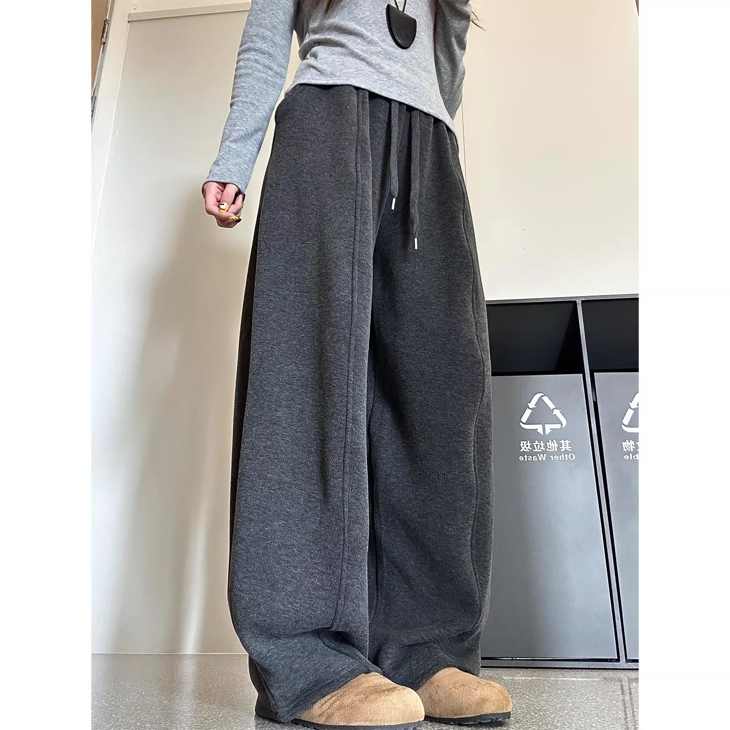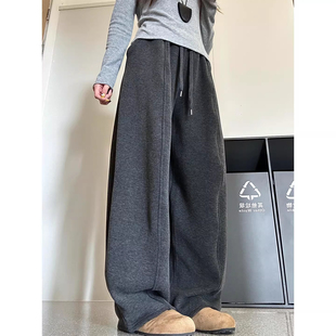 矮小个子深灰色垂感休闲阔腿裤 显瘦穿搭145CM高腰宽松直筒拖地裤