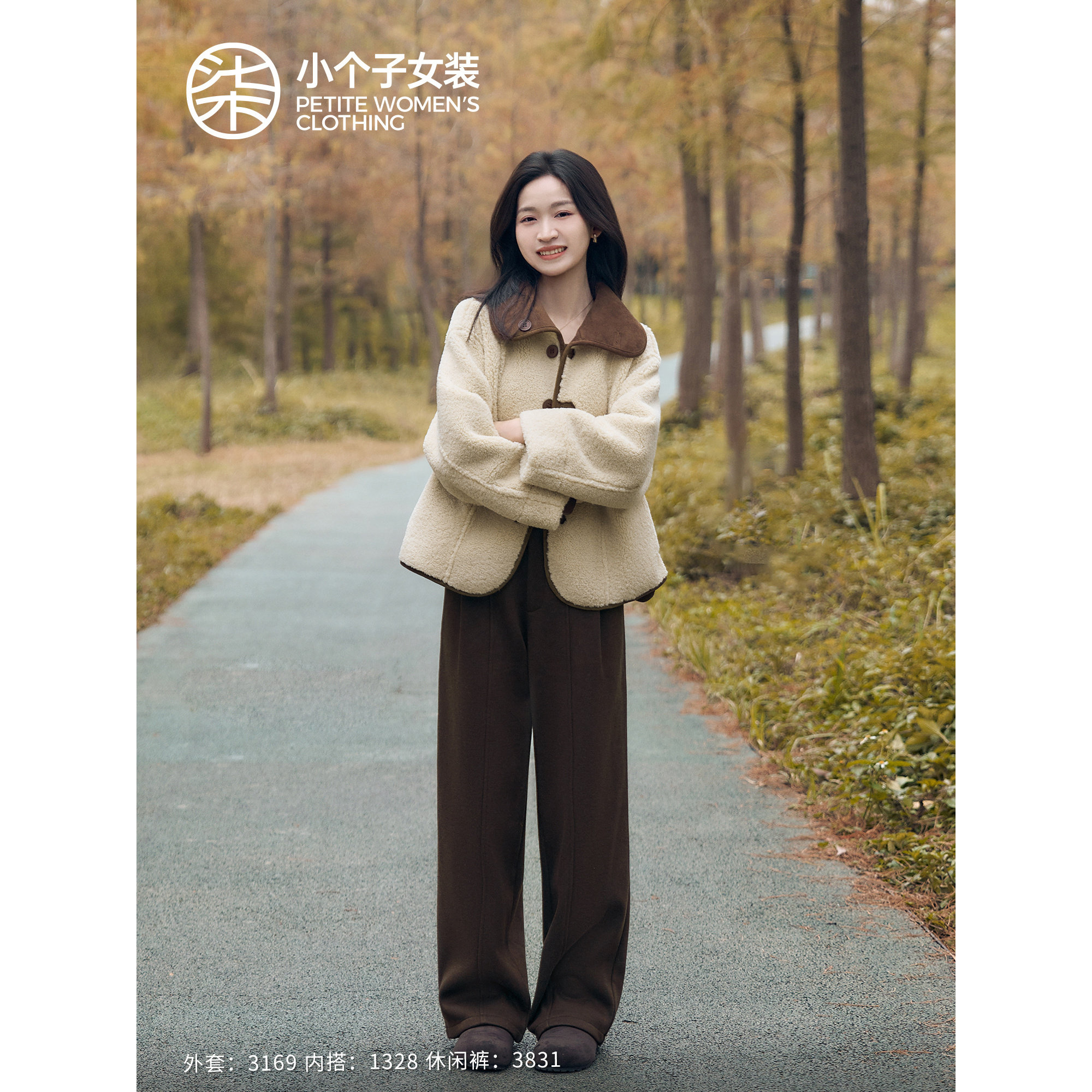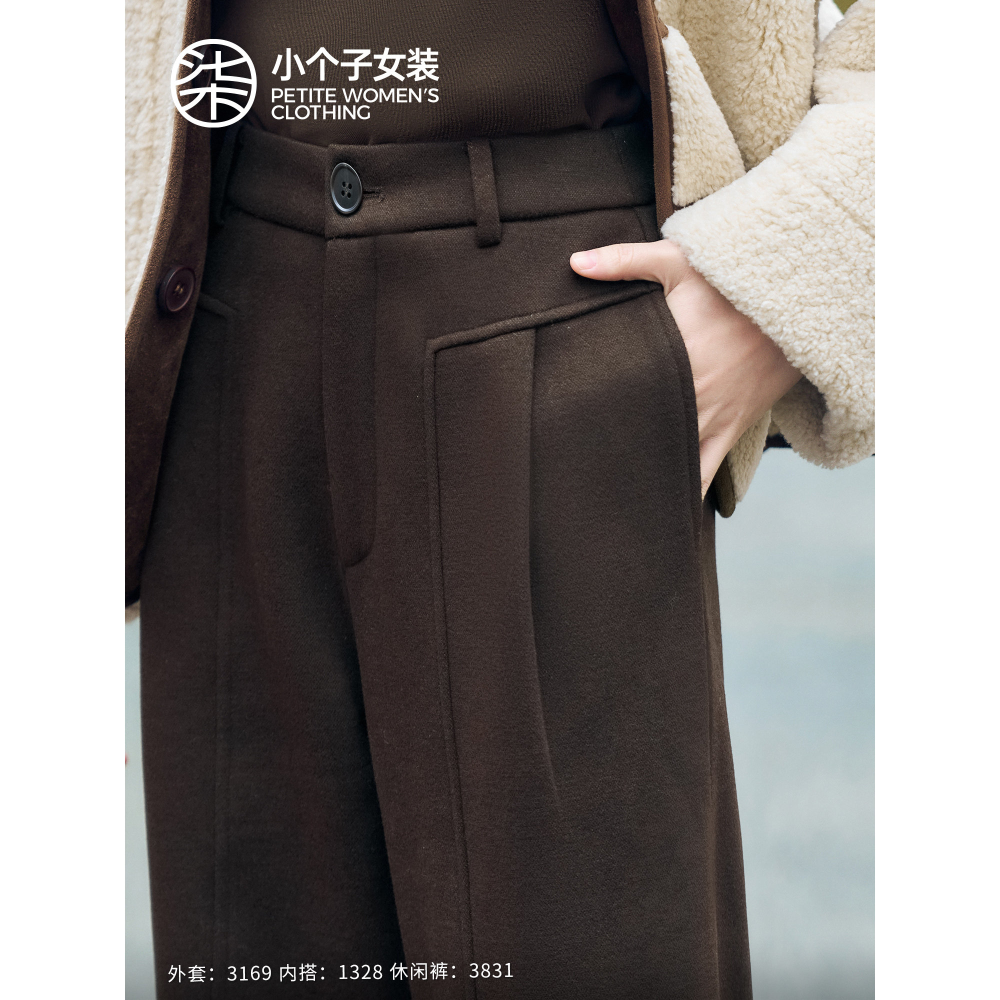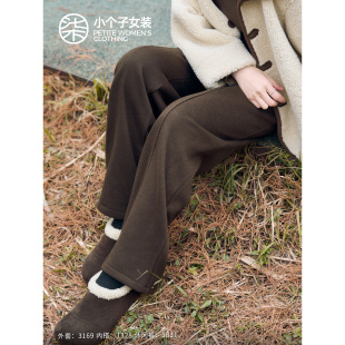 96cm3831 加绒加厚秋冬95 柒量一裁小个子咖色休闲裤 阔腿裤
