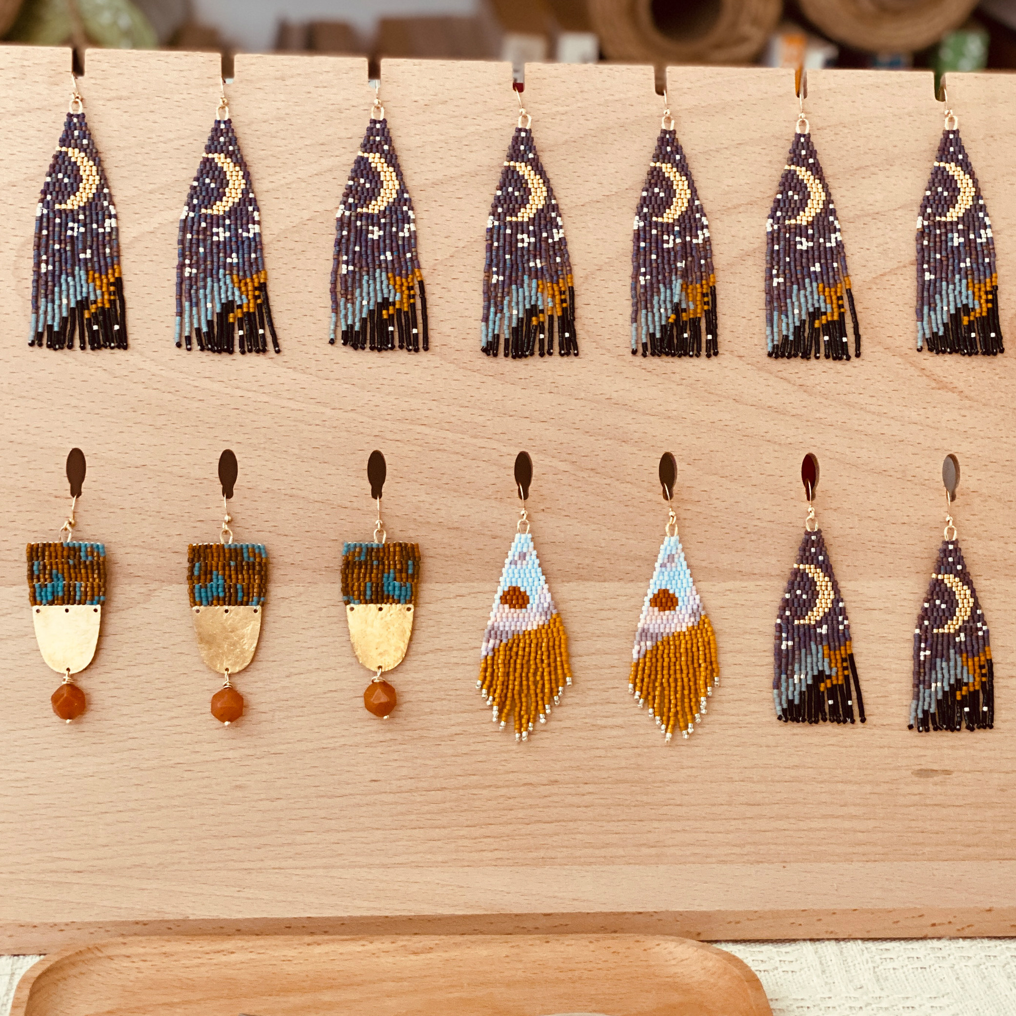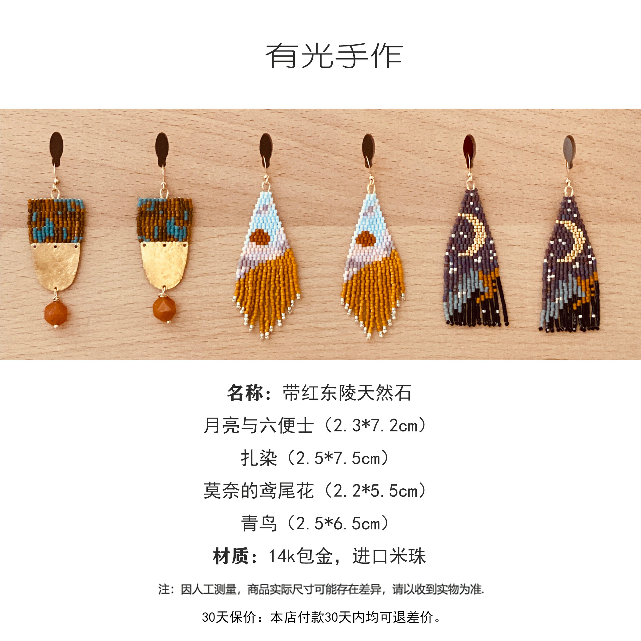 有光手作 手工编织串珠耳饰天然石米珠耳环女小众设计师复古饰品