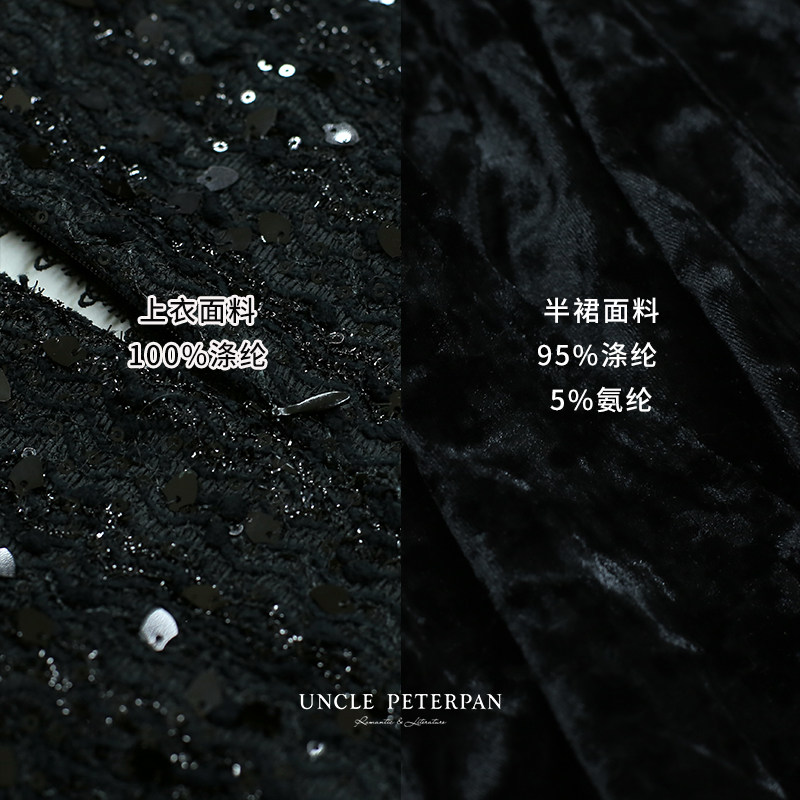 彼得潘大叔 珠片面料立领后拉链上衣丝绒舒适包臀半裙 夜蕾颂歌