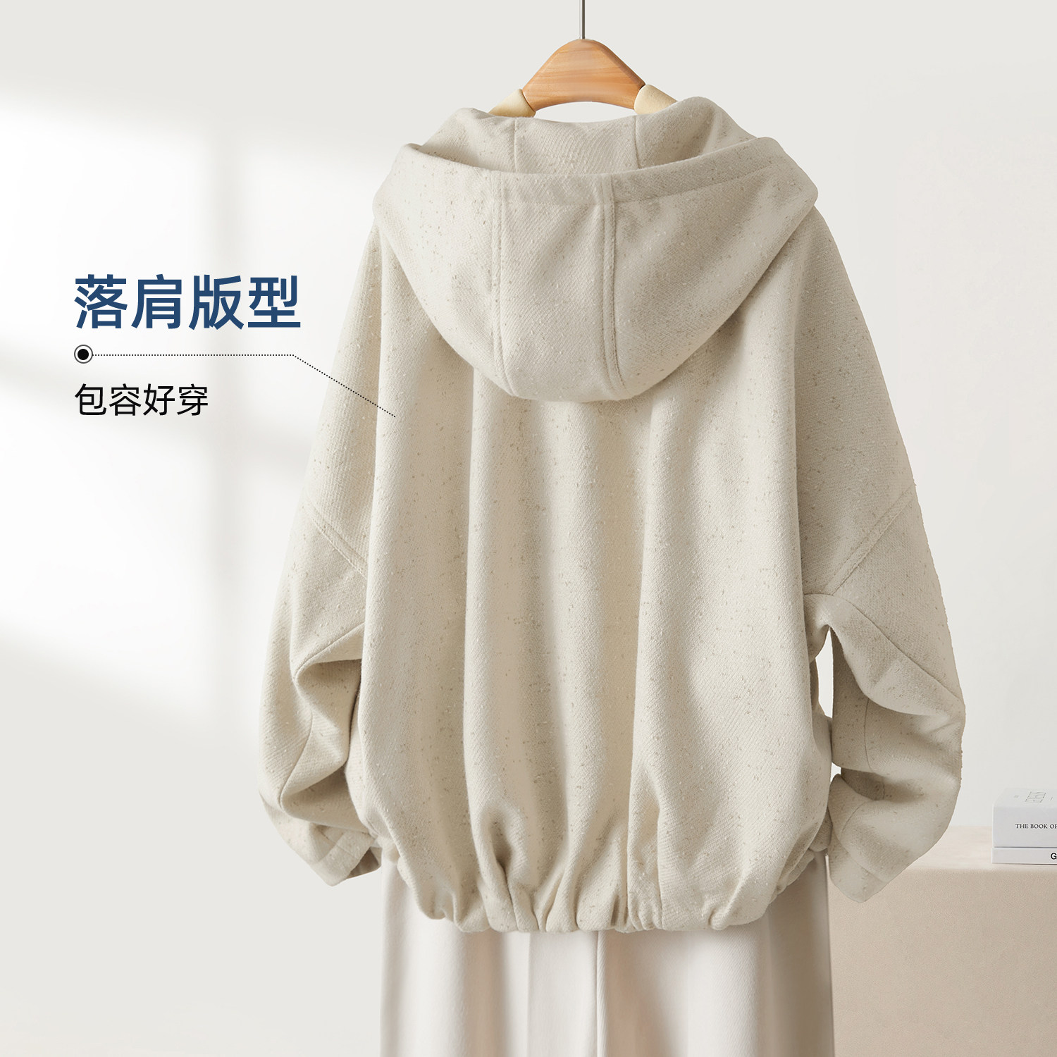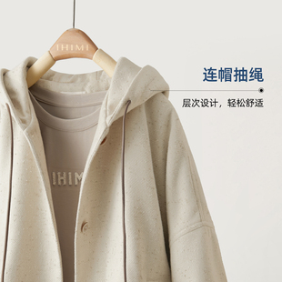 宽松百搭上衣 IHIMI海谧休闲风花纱呢料连帽外套女春季 会员8折