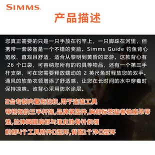 SIMMS飞蝇路亚马甲G3溪流多功能男女钓鱼背心防水垂钓装 备钓鱼服