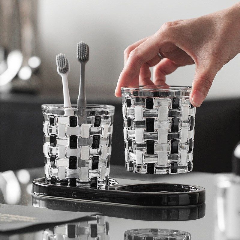 轻奢水波纹漱口杯透明牙具刷家用洗漱收纳杯杯子高颜值网红漱口杯