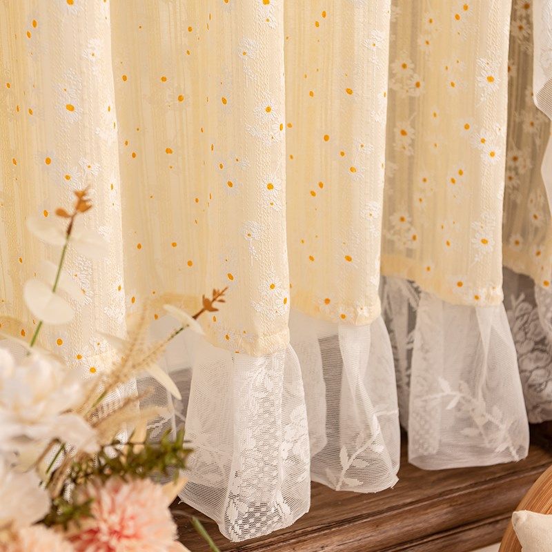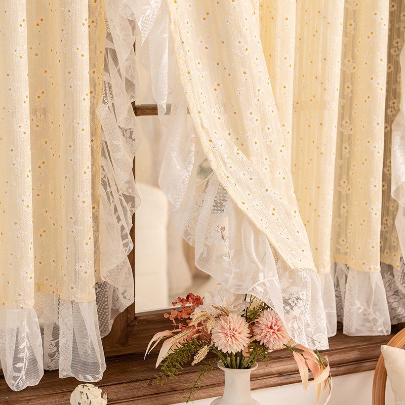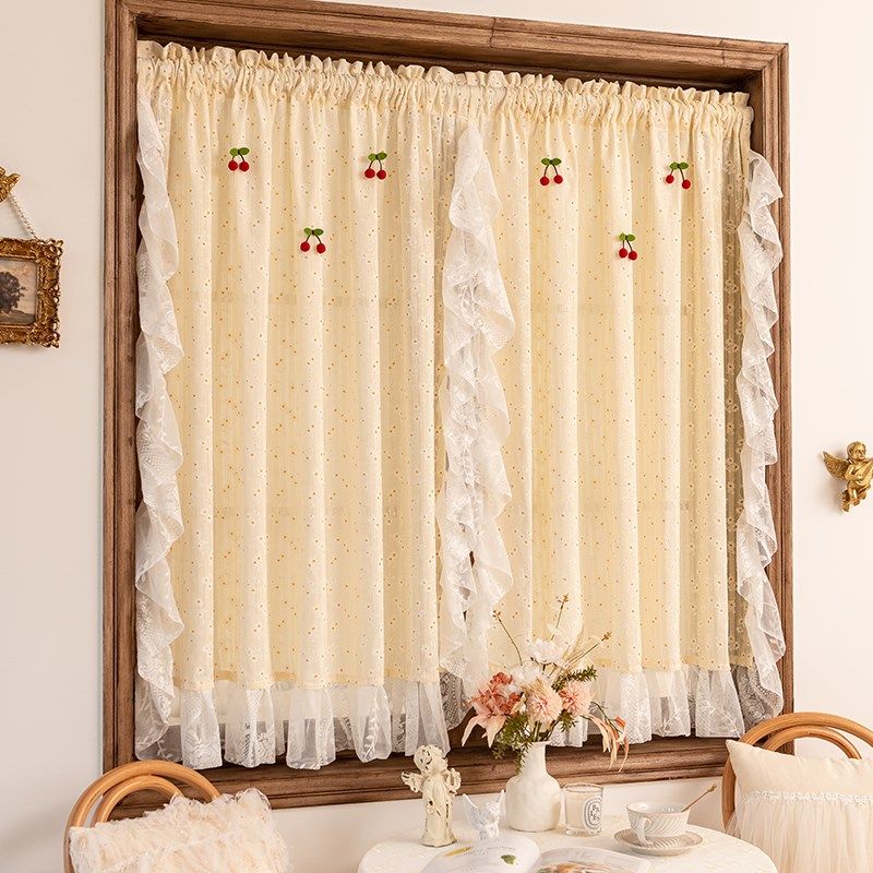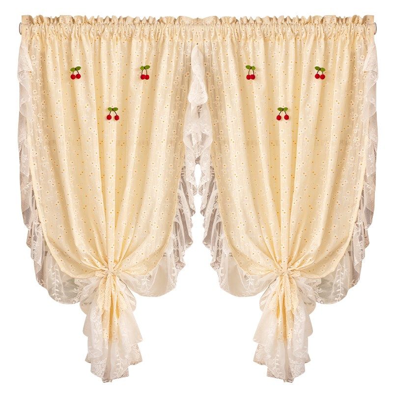 奶油风法式 蕾丝碎花荷叶边棉麻窗帘公主风卧室飘窗短帘门帘隔断帘
