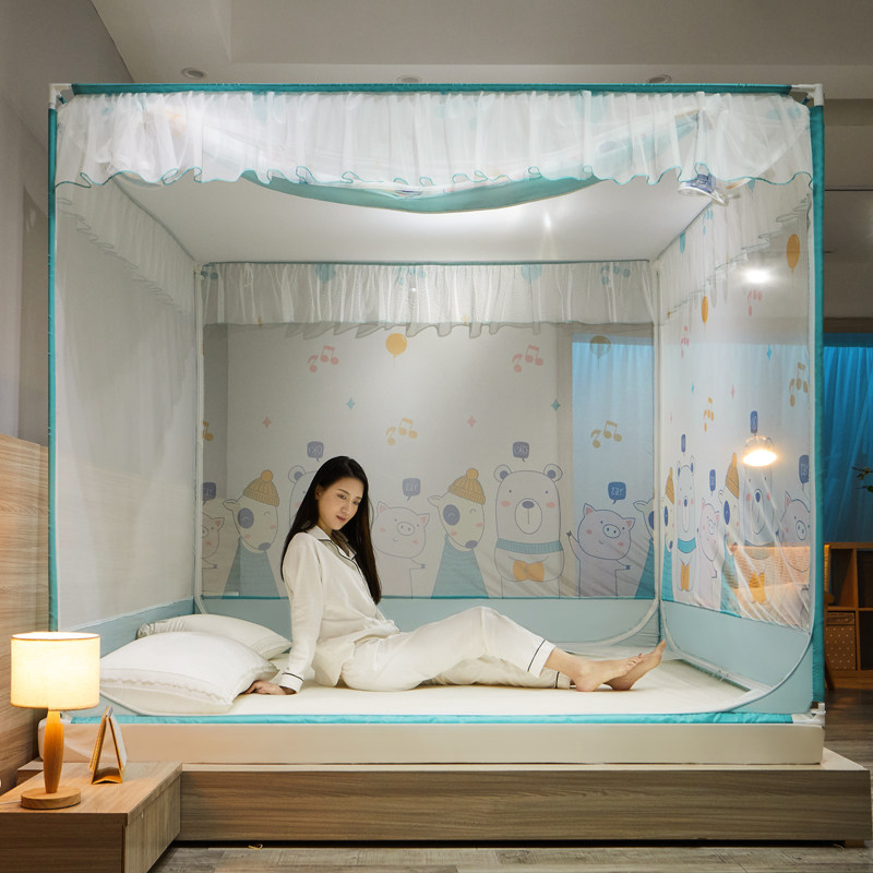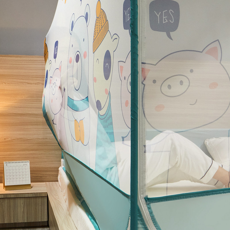 儿童防摔尘可折叠纹帐双门 卧室免安装 夏季 蒙古包蚊帐家用2025新款