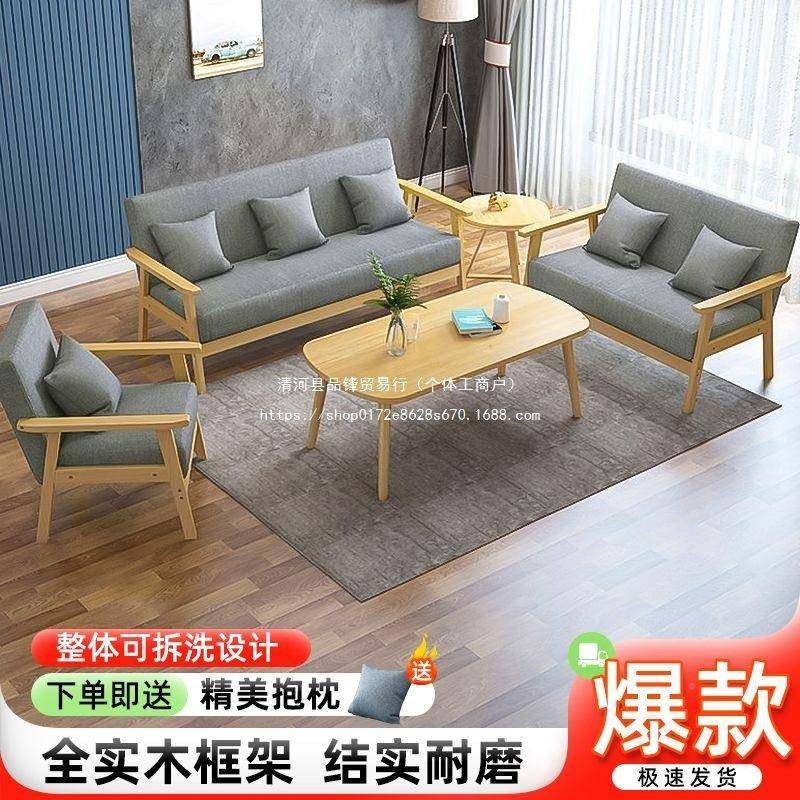 实木发茶几沙组合子套小户型客厅SYR现代简约布装 艺三人办公椅出