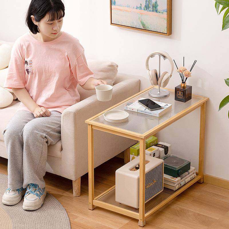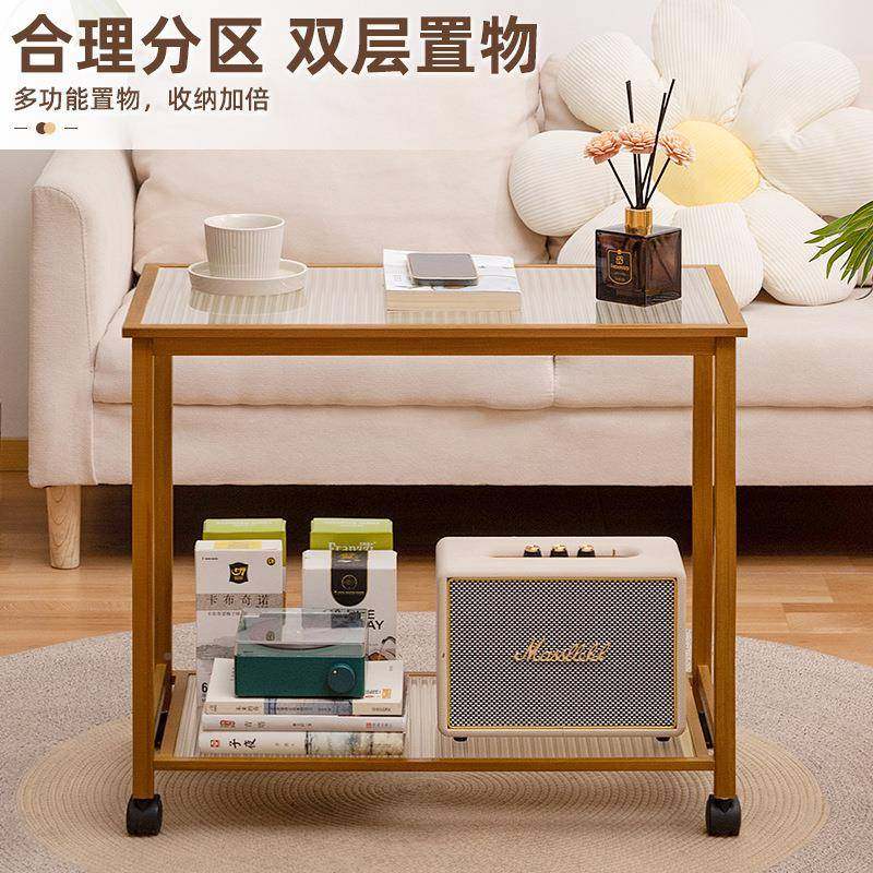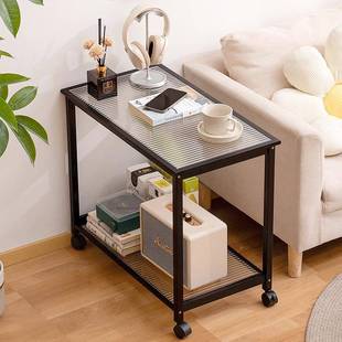 新款 奶油风玻璃可移动沙发边几边客厅简约床头侧边柜小茶几小推车