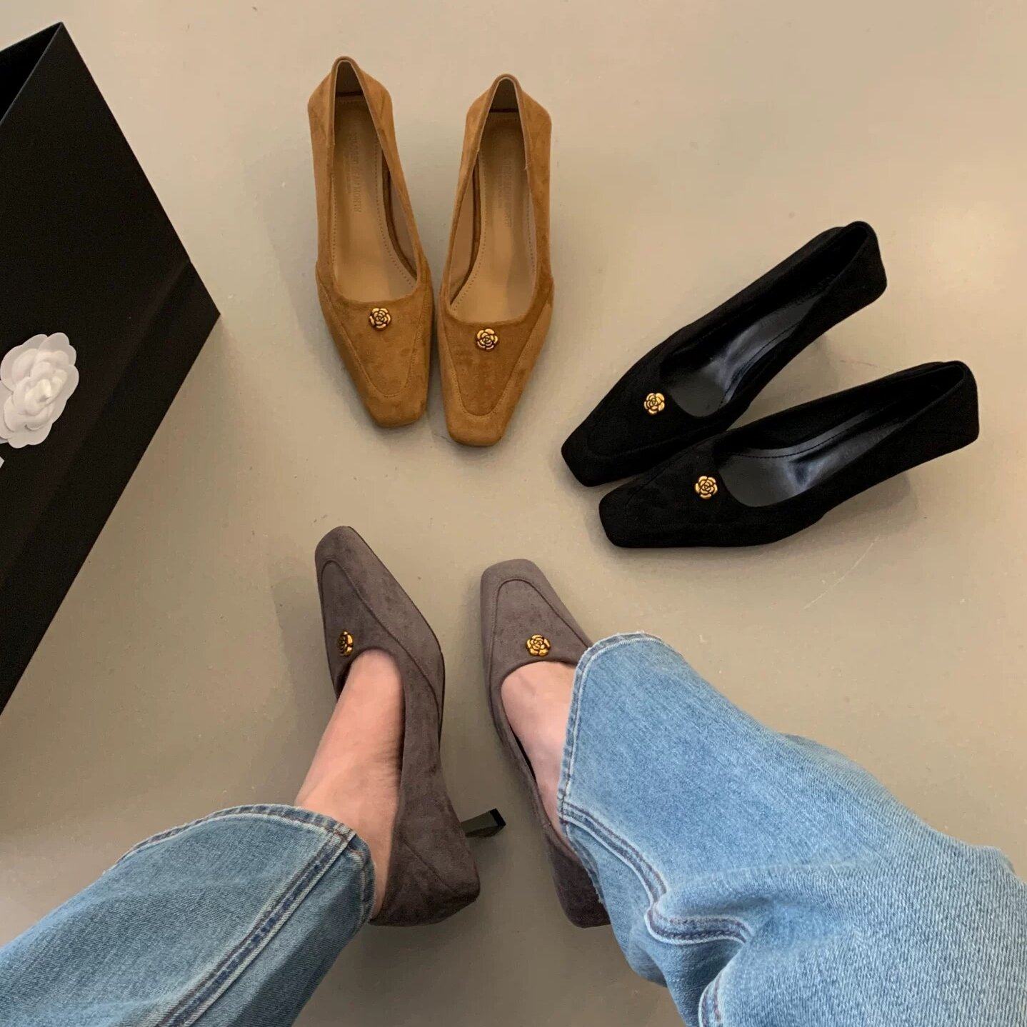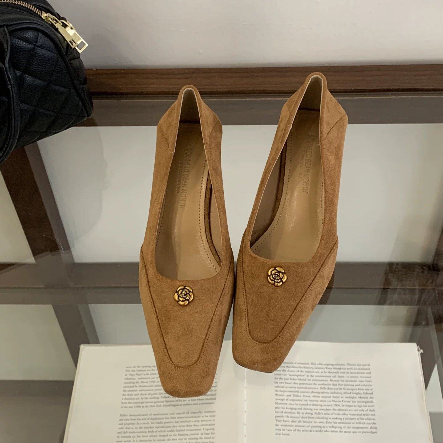设计师单品羊皮单鞋 Cihi设计女鞋 红底侧空尖头浅口2025新款