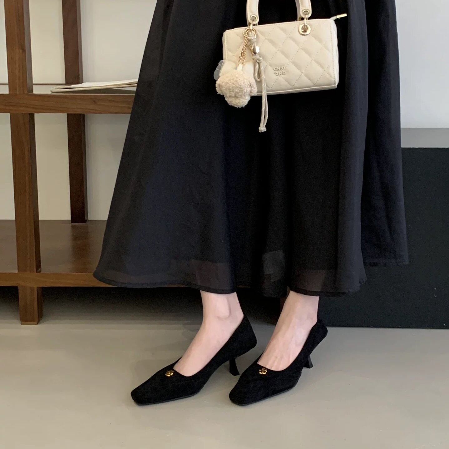 女尖头性感浅口名媛风裙子兔毛加绒保暖单鞋 2025法式 毛毛低跟鞋