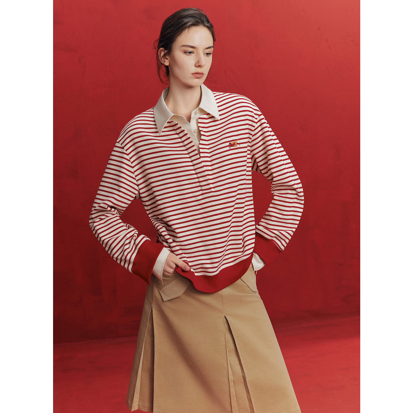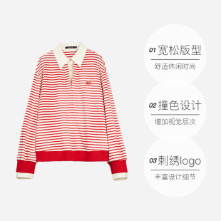 ELLE学院新年条纹卫衣女2026春新款 条纹秩序 宽松上衣 自营