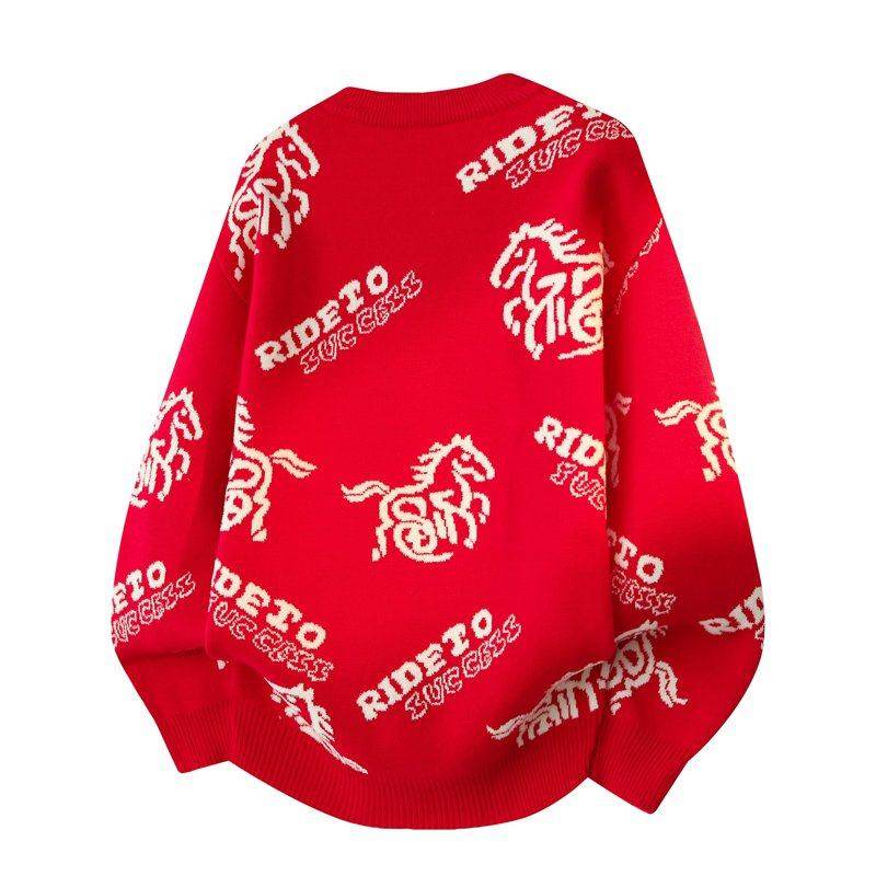 针织衫 马年红色冬季 青少年毛线衣本命年 毛衣男生情侣冬装 2025新款
