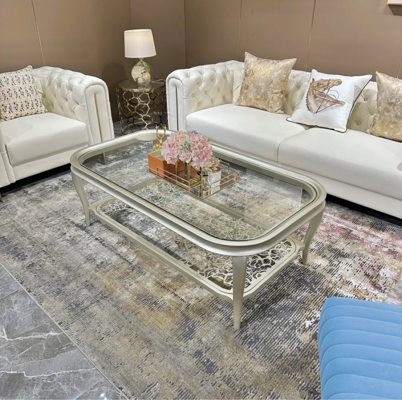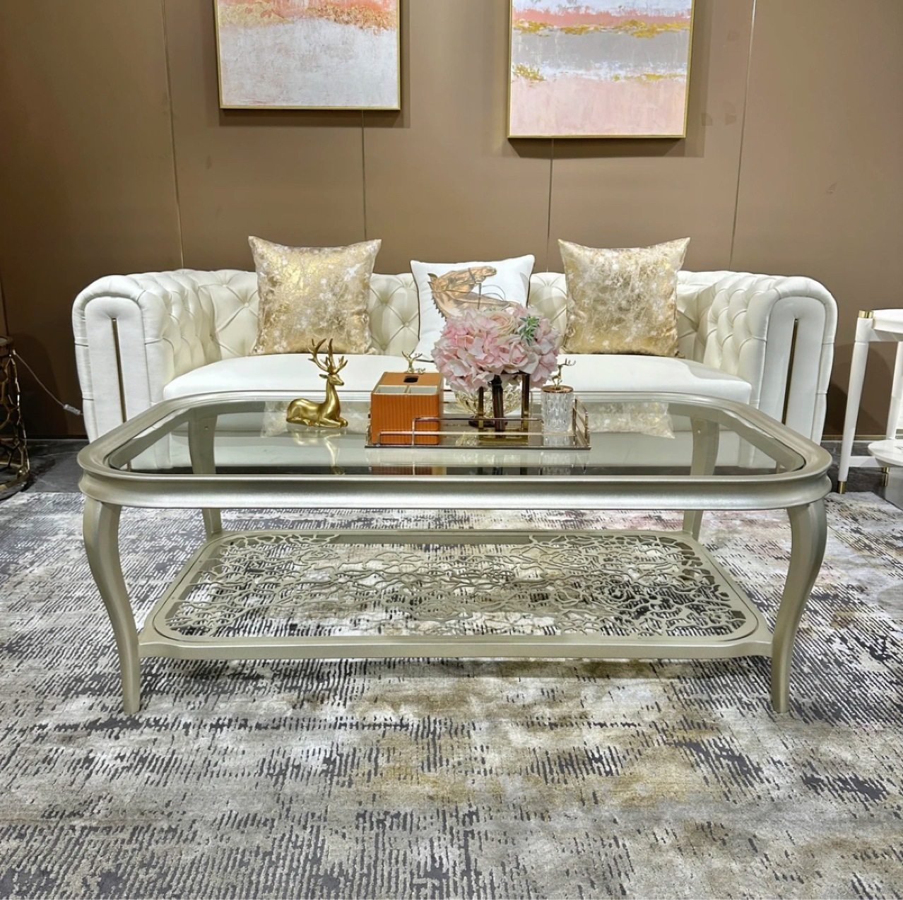 1.6 玫瑰1.4 1.8米 轻奢长茶几高级实木香槟金香槟银双层时尚 美式
