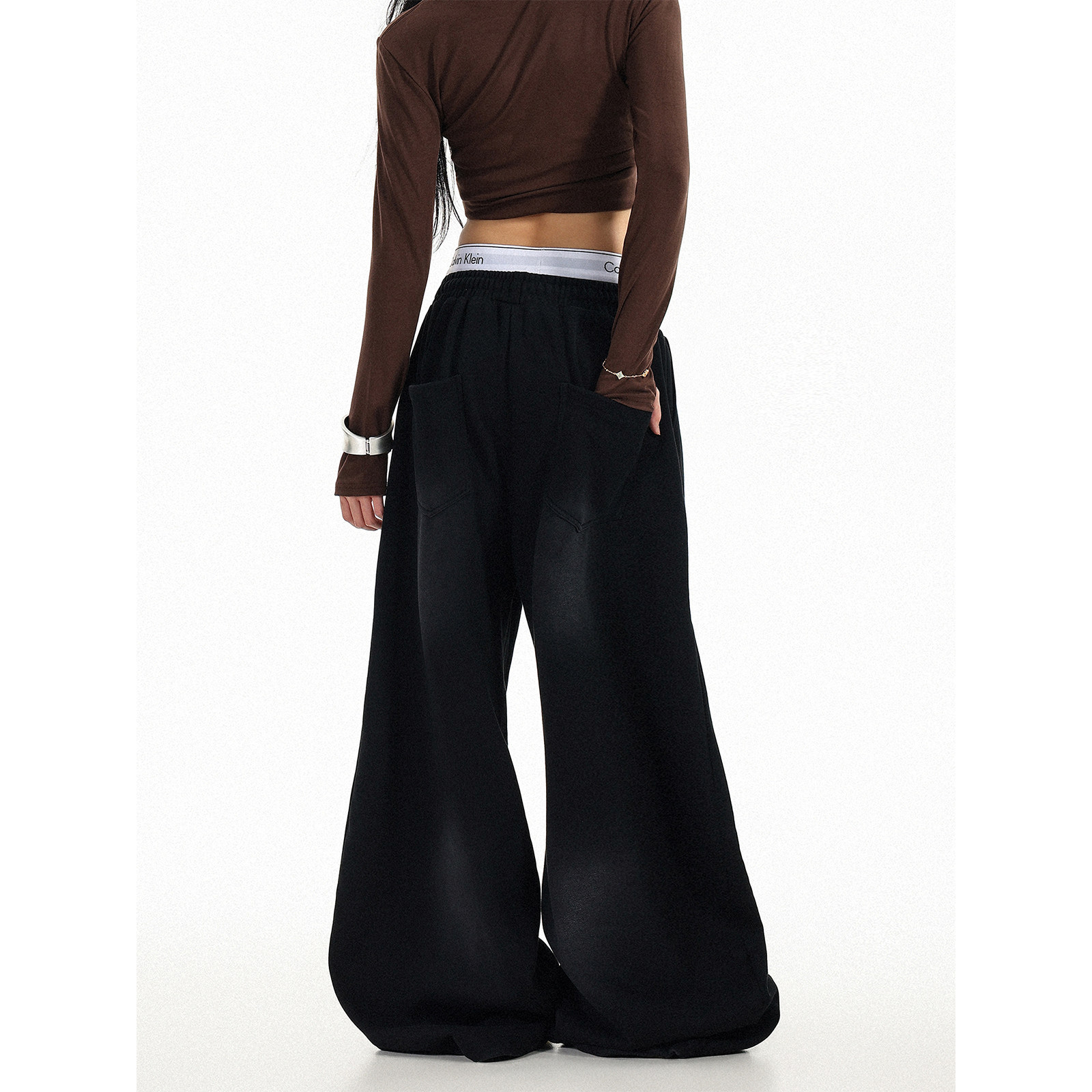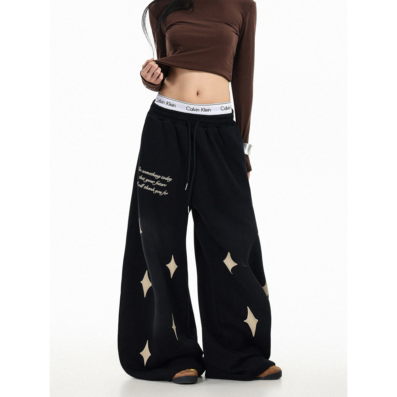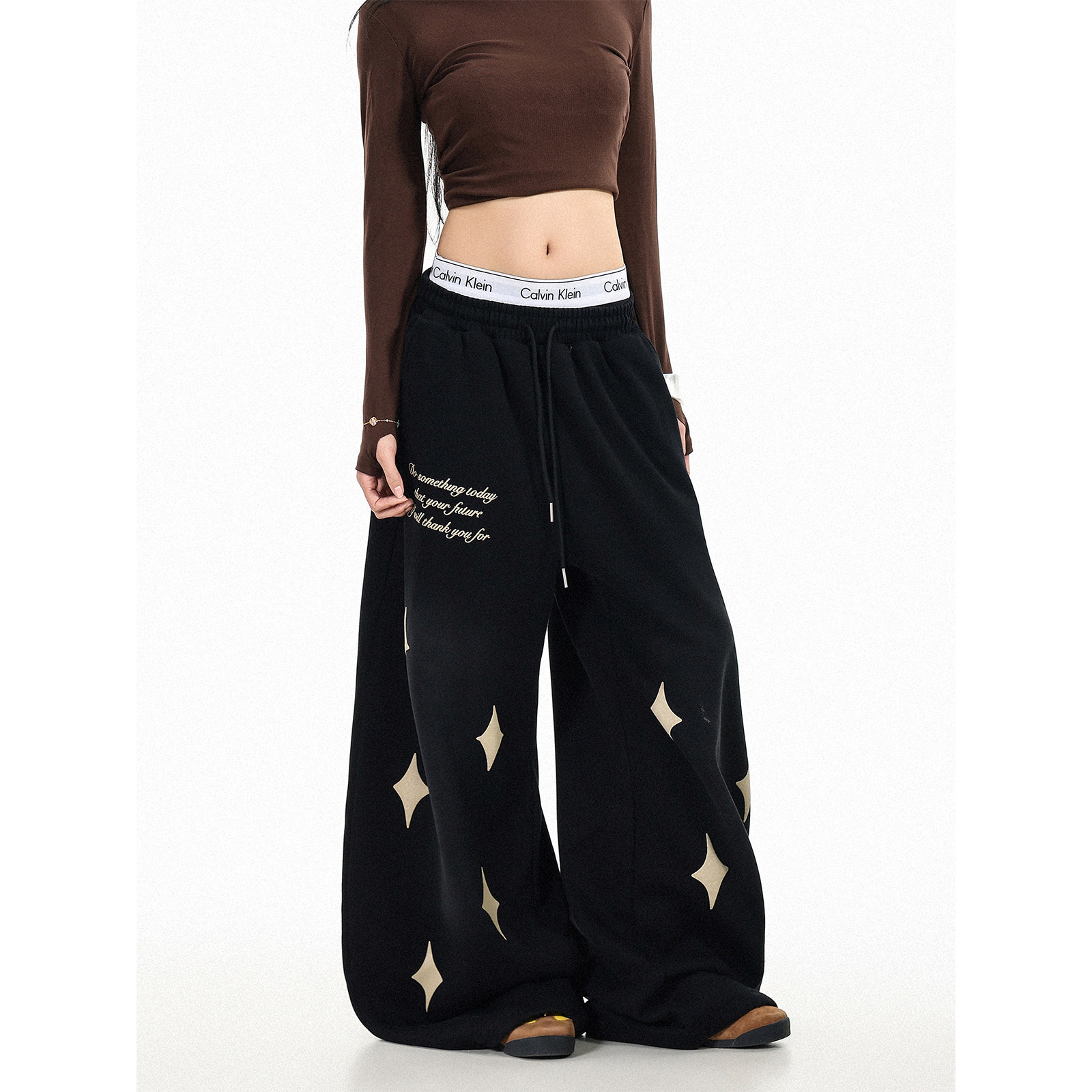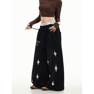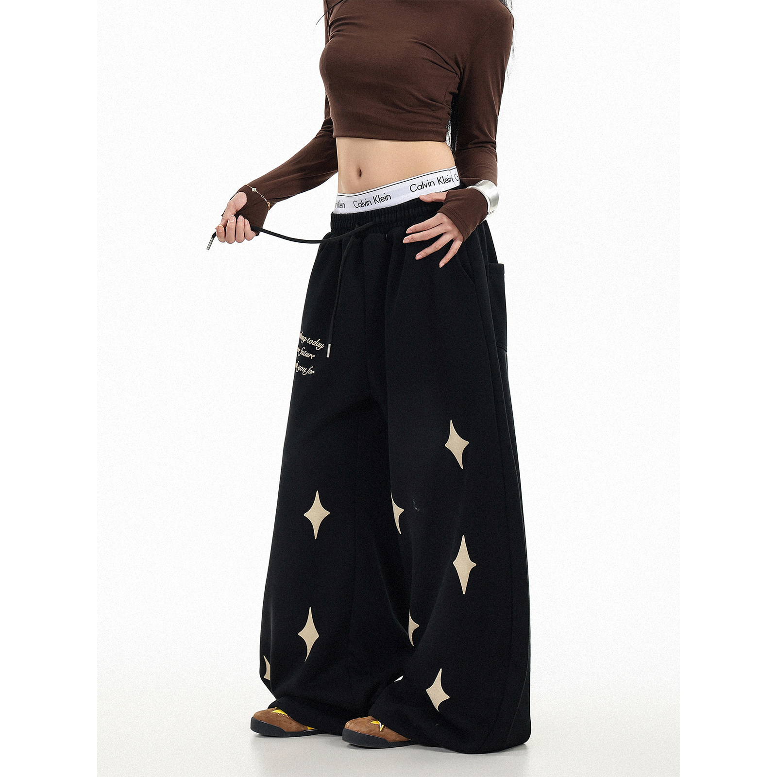 男女宽松直筒百搭长裤 GCINIM401美式 街头休闲风黑色星星印花卫裤