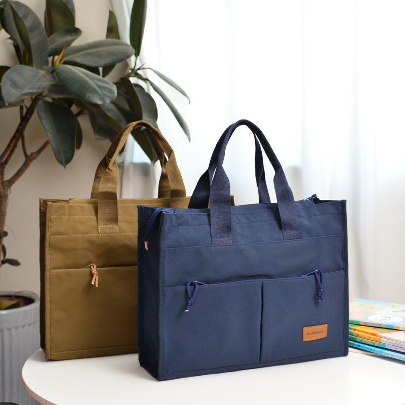 新款 学生手提袋轻便大容量初中生补习袋结实A4拎书袋美术袋子 横版