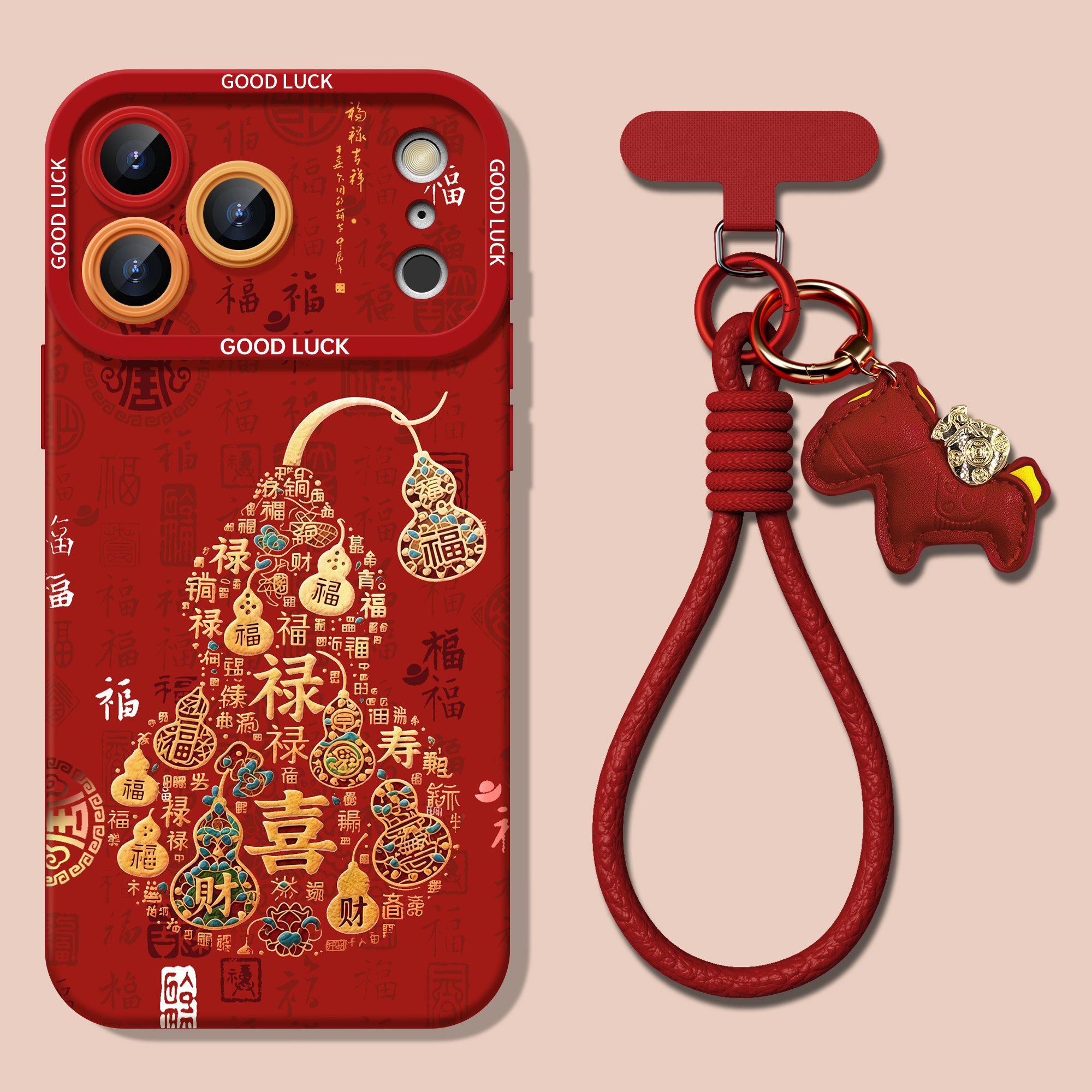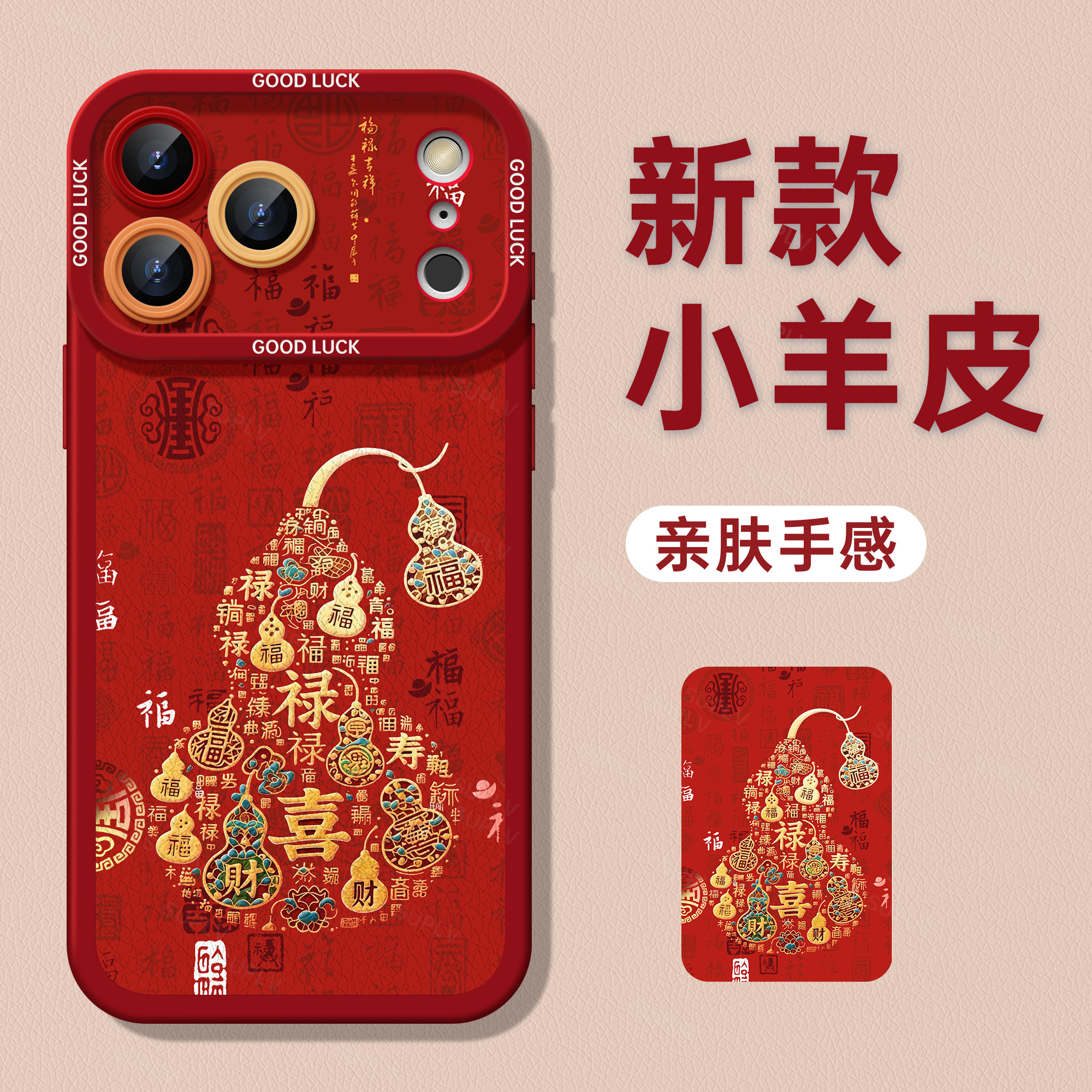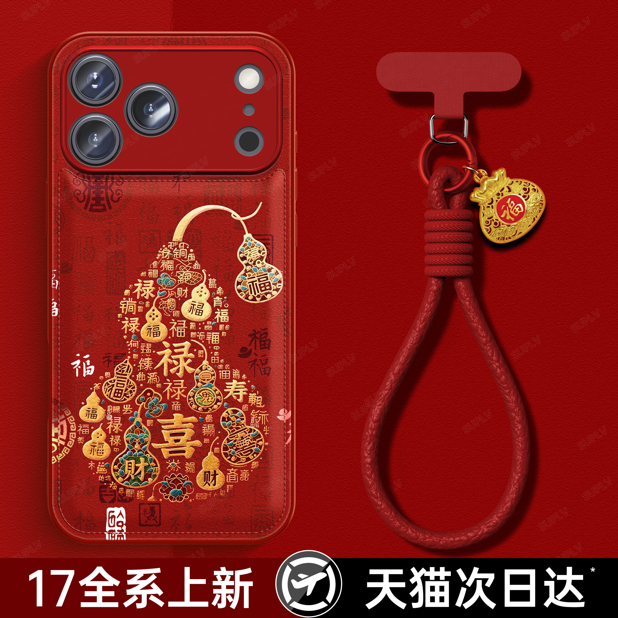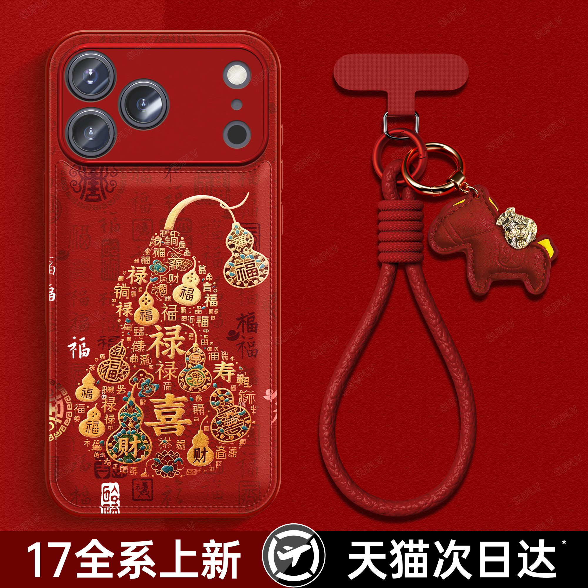 适用苹果17promax手机壳iPhone17秋冬新款 高级感小众16pro好看女15p挂绳小羊皮14红色13马年葫芦防摔保护套伟