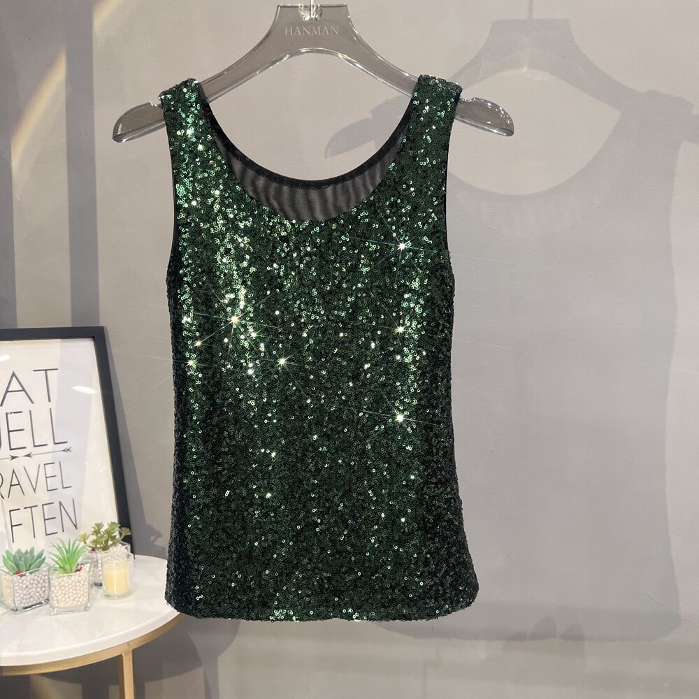 mesh sexy top for 亮片背心性感网纱上衣 Glitter women女式 vest