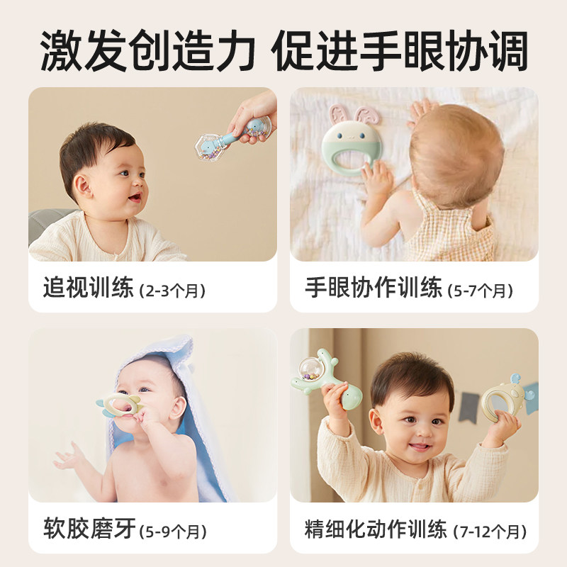 贝肽斯宝宝手摇铃新生婴儿玩具益智抓握训练牙胶可咬0 6个月1岁