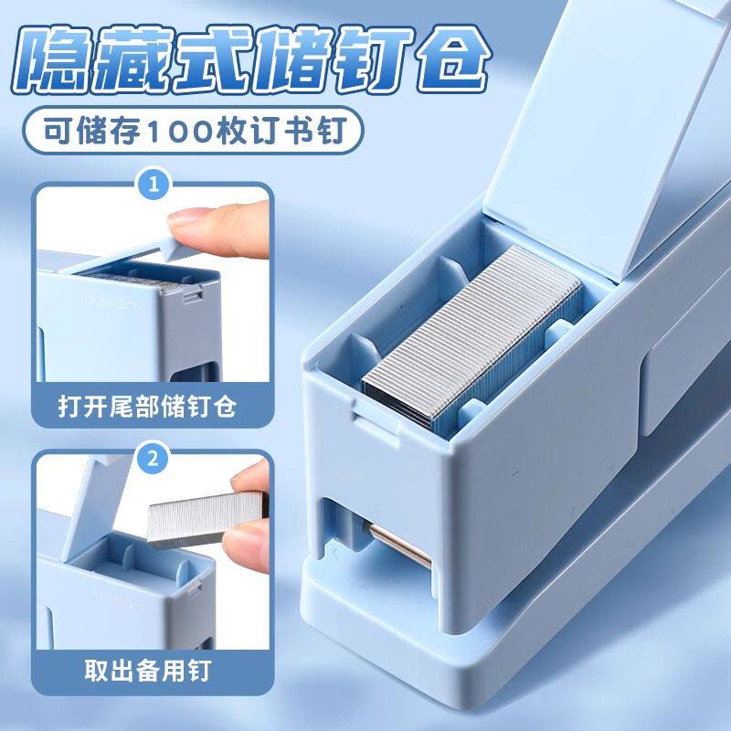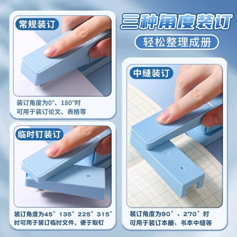 订机ins风新款 自带储钉盒装 订机中缝支持24 得力订书机可360度旋转高颜值学生用省力订书器办公用装