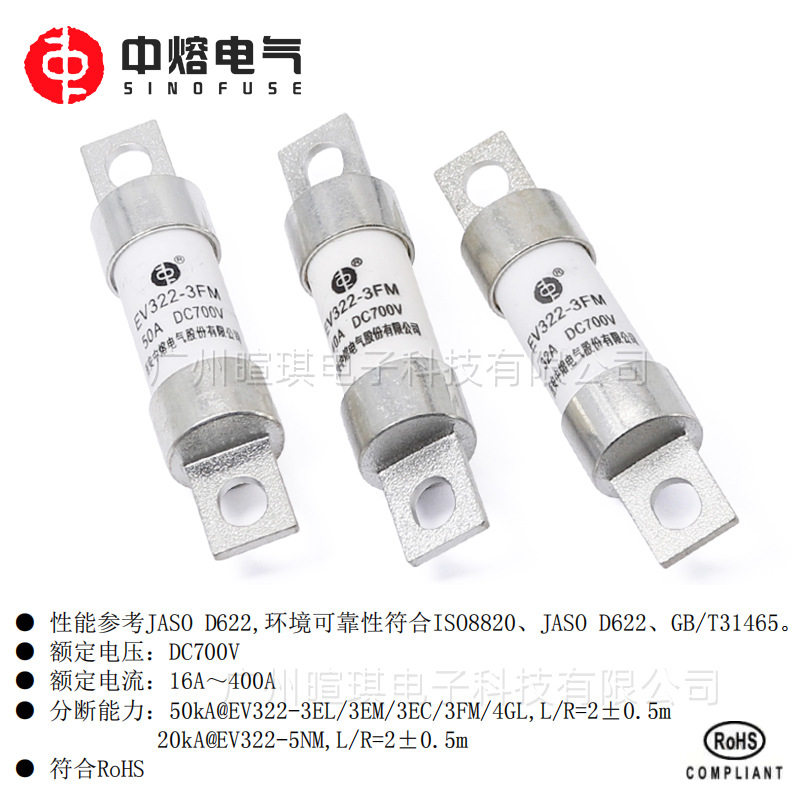 西安中熔EV322 3FM汽车熔断器保险丝车用700V低压直流快速熔断器