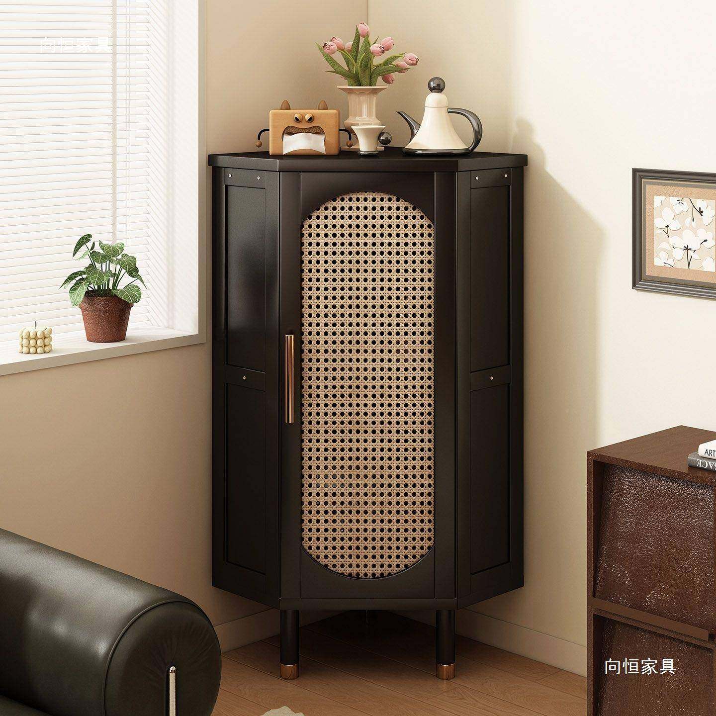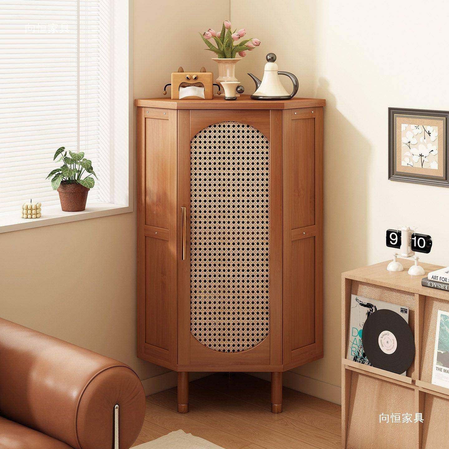 编转厅角柜复古三角柜藤家用客拐269物角置物柜多层矮柜收纳储柜酒柜