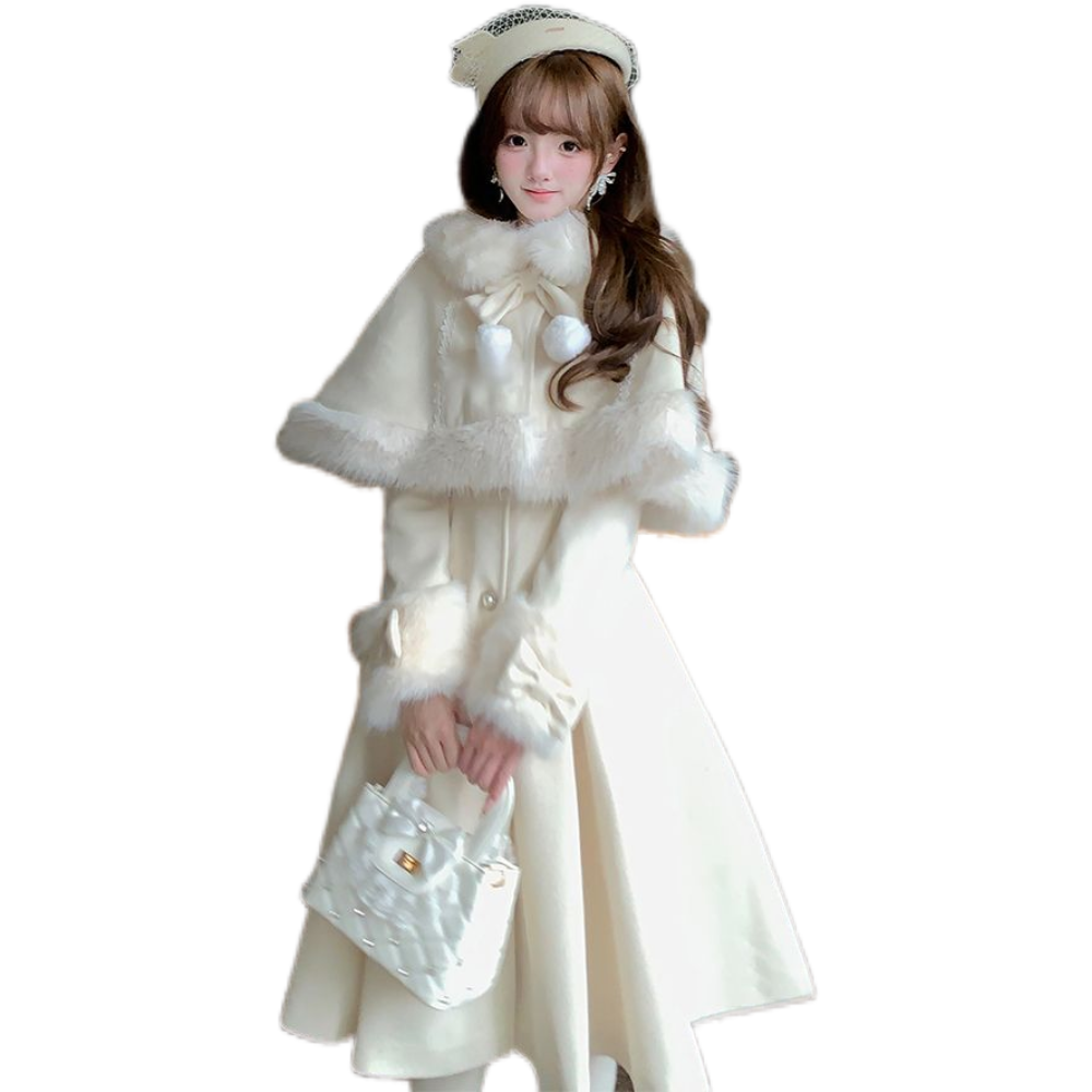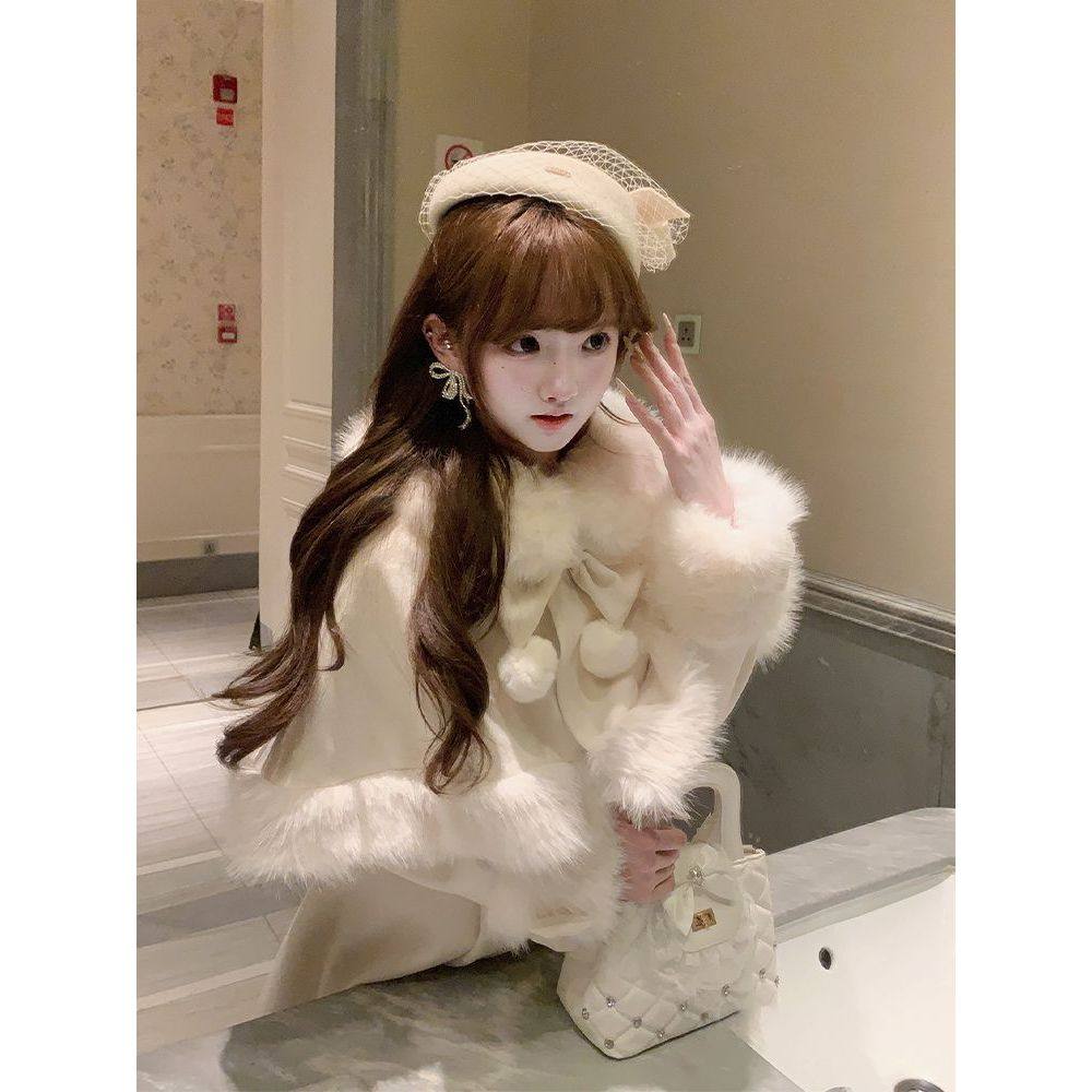 毛呢外套裙两件套 小个子可爱甜妹保暖蝴蝶结斗篷 星野蜜语