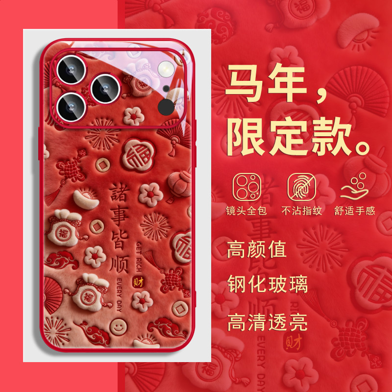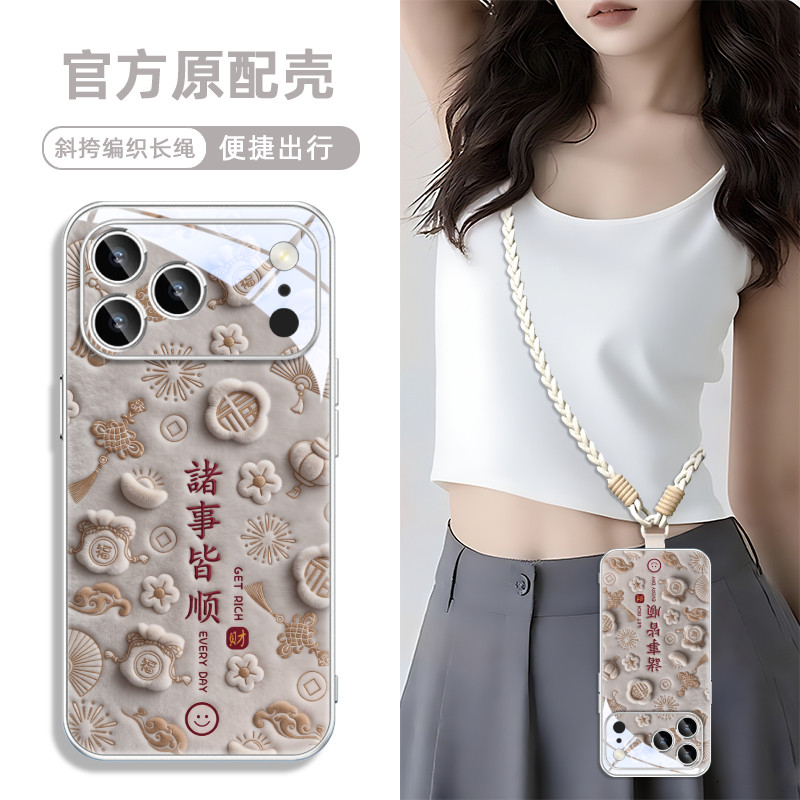 马年新年款 xr带挂绳斜挎13 适用iphone16苹果17promax手机壳air红色plus本命年15橙14过年12好运11发财xs新款