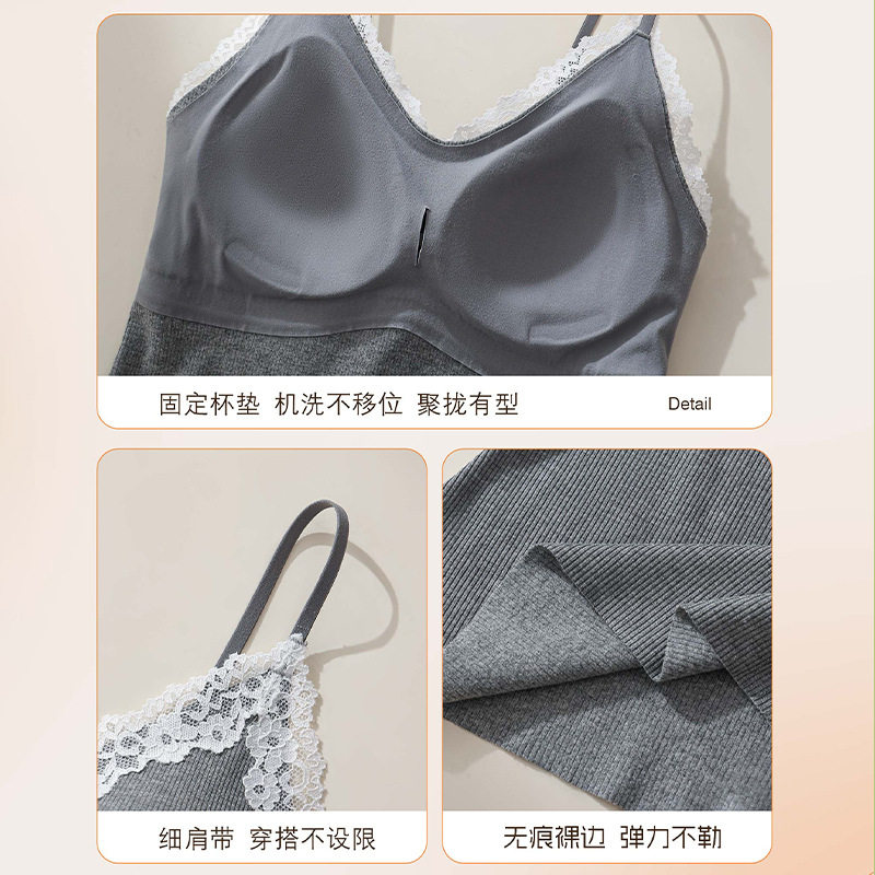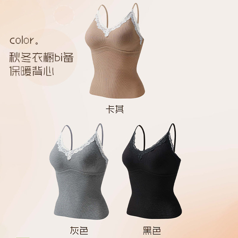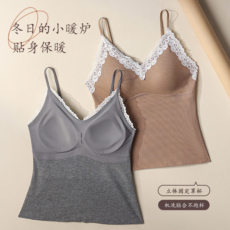 菇娘家德绒保暖背心女内搭冬带胸垫一体式 加绒保暖内衣 内衣新款